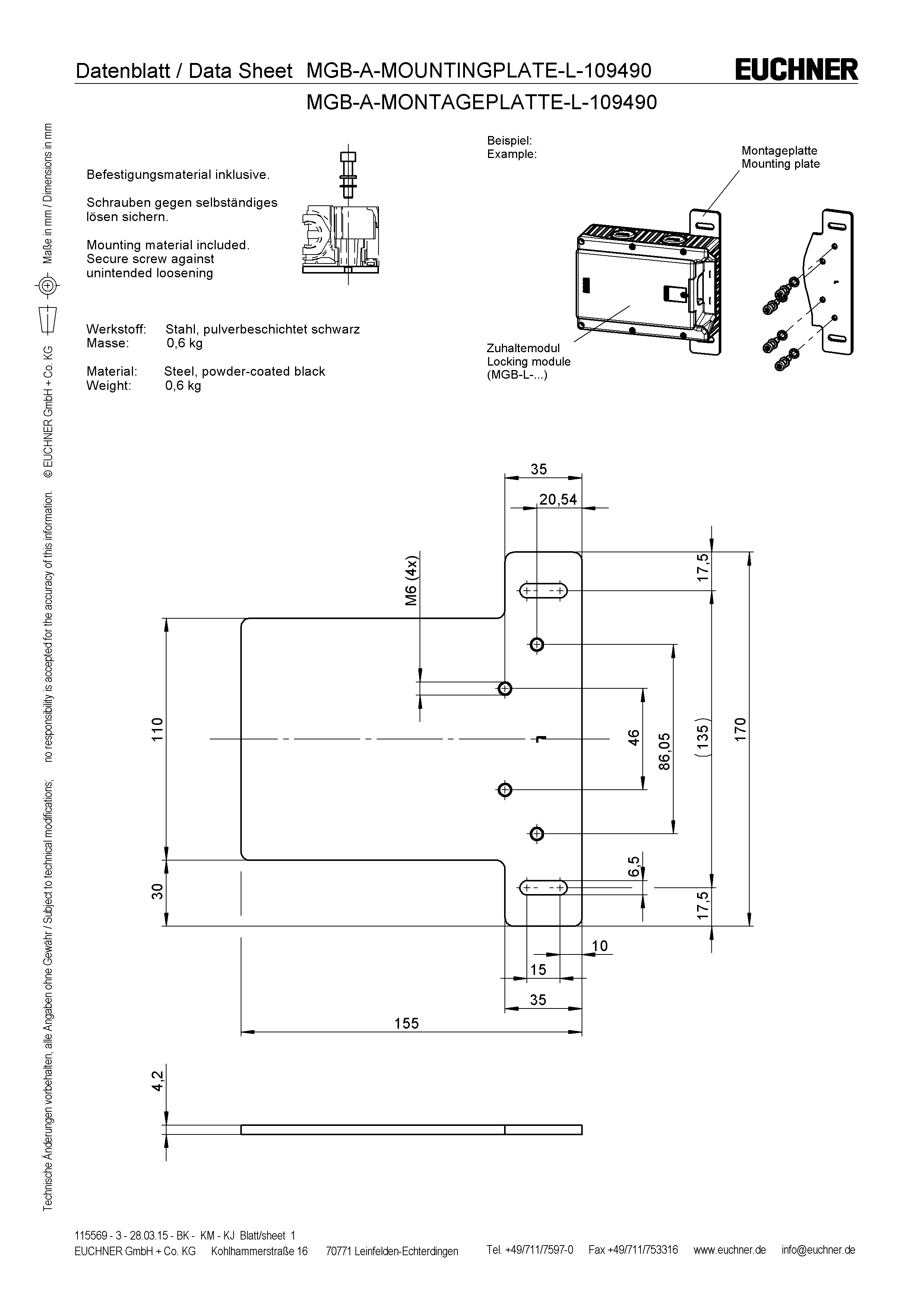 | Název výrobku | MGB-A-MOUNTINGPLATE-L-109490 |