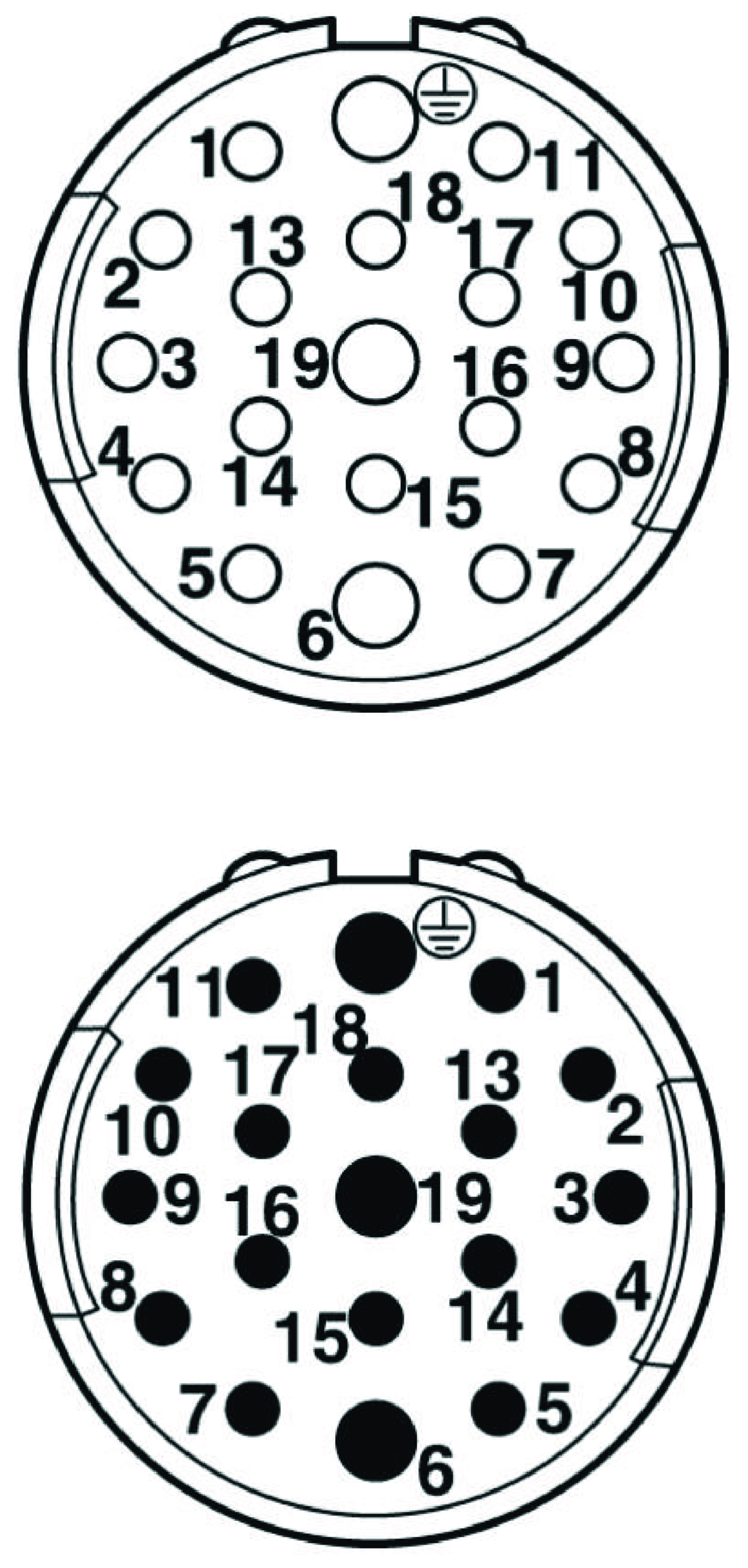 | 2 | Zástrčka s dutinkami a převlečnou maticí, M23, 19pól. |