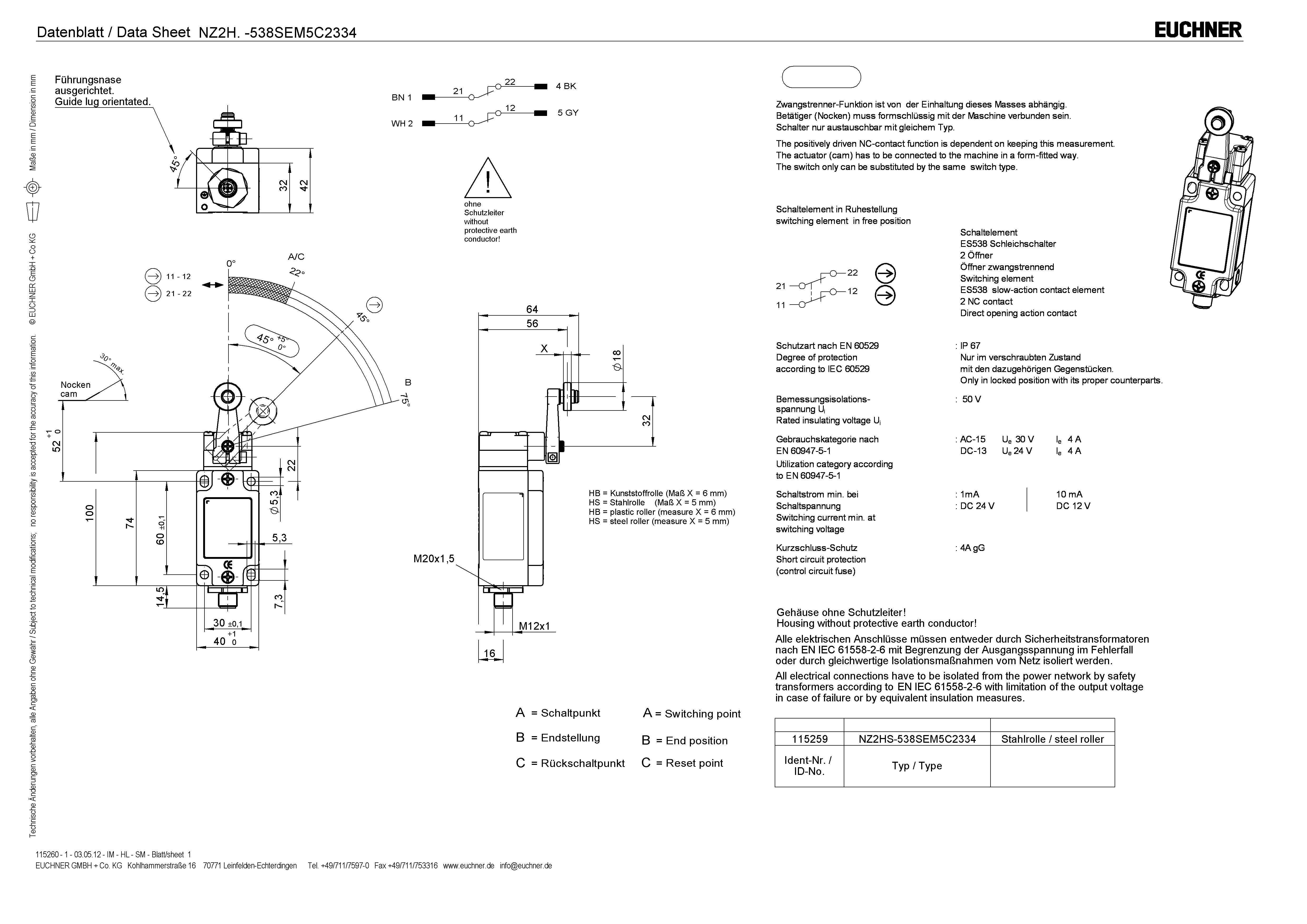 İşletim kılavuzu Emniyet şalteri NZ.H/P