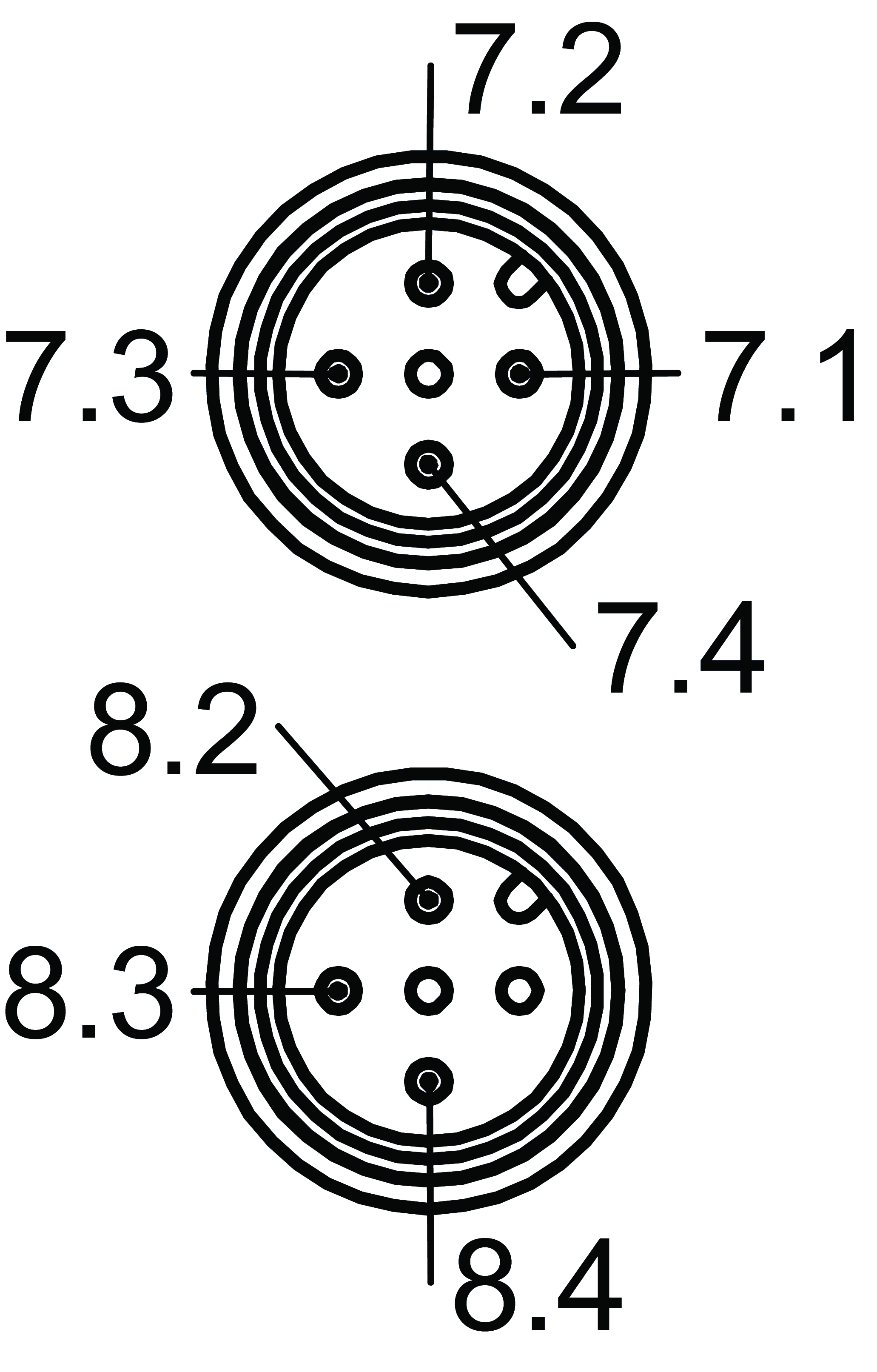 - Zástrčka M12 s dutinkami, 5pól. (úhlová) / konektor M12 (přímý)