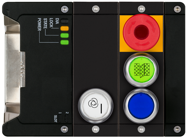 - 1× prosvětlené tlačítko nouzového zastavení podle ISO 13850