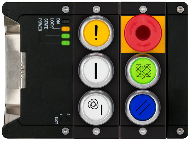| 1 | 2× nuceně rozpínaný kontakt | Prosvětlené tlačítko nouzového zastavení | |||||||
