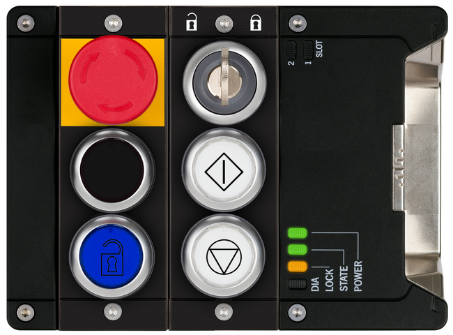- Vyhodnocovací modul s jištěním ochranného krytu MGB2 pro připojení ke sběrnicovému modulu MBM