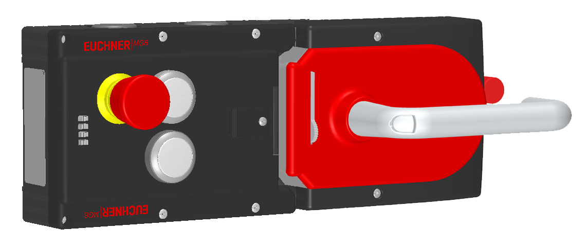Jisticí sada MGB-L2HE-ARA..., (jištění ochranného krytu silou elektromagnetu) 2× tlačítko, nouzové zastavení