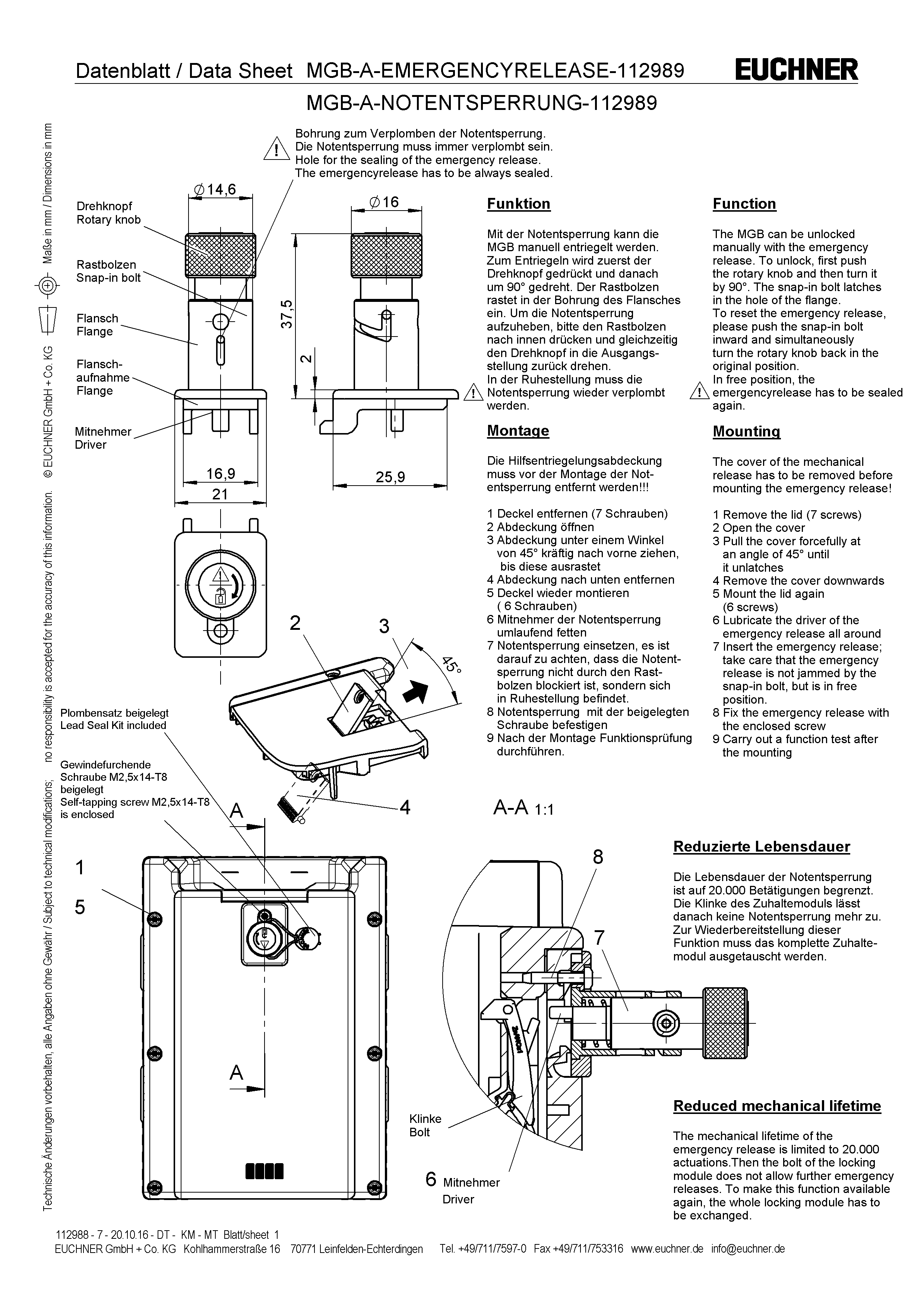 | Další funkce | Vč. předem namontovaného nouzového odjišťovacího prvku | |||||||||||||||||||||||||||||||||||||||||||||