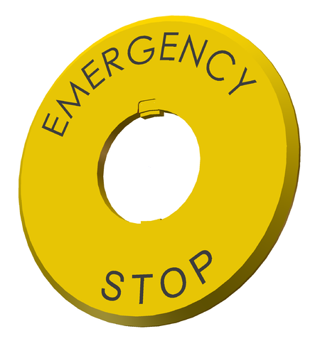 - Not-Halt Schild für 40mm Knöpfe bei ES-XN-Geräten mit Text: Emergency Stop.