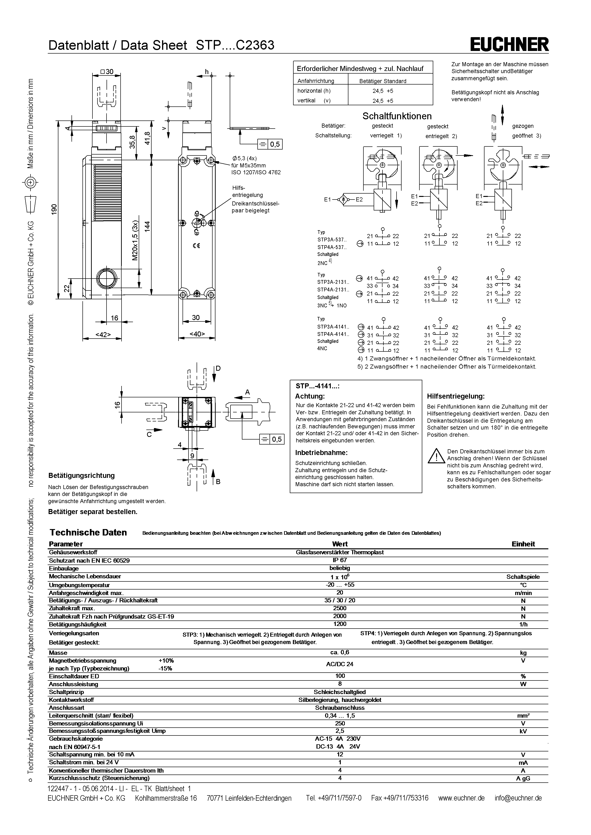 Инструкция по эксплуатации Предохранительный выключатель STP…