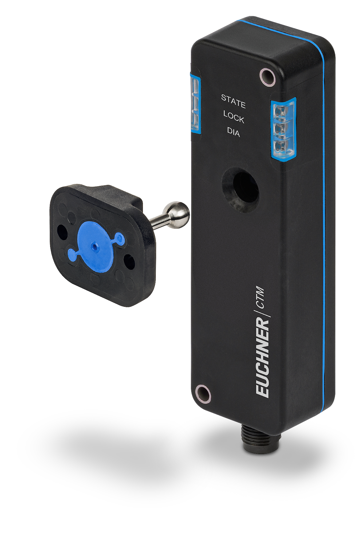 Für die Absicherung von kleinen Türen und Klappen bietet Euchner die Lösung: Die neue kompakte transpondercodierte Zuhaltung CTM ermöglicht Prozess- und Personenschutz auf kleinstem Raum. Der Clou: Mit seinen Abmessungen von lediglich 120 x 36 x 25 mm lässt sich der Schalter besonders einfach in Verpackungsmaschinen integrieren. Typische Anwendungen sind Case Packer, Dosier-, Füll- und Verschließmaschinen. Der innovative Elastomer-gelagerte Kugelbetätiger sichert selbst Türen mit extrem kleinen Schwenkradien ab. Dabei garantiert er die höchste Schutzart IP69. Mit einer speziellen Hygieneausführung eignet sich der Schalter besonders für die anspruchsvolle Lebensmittel- oder Pharmabranche. Der CTM bietet eine zuverlässige Schutztürabsicherung nach Kat. 4/PL e entsprechend EN ISO 13849. Dank verschiedener Produktvarianten und Schnittstellen bietet er für jeden Anwender die passende Lösung, auch für Industrie-4.0-Anwendungen durch IoT-fähige Kommunikation mit IO-Link.