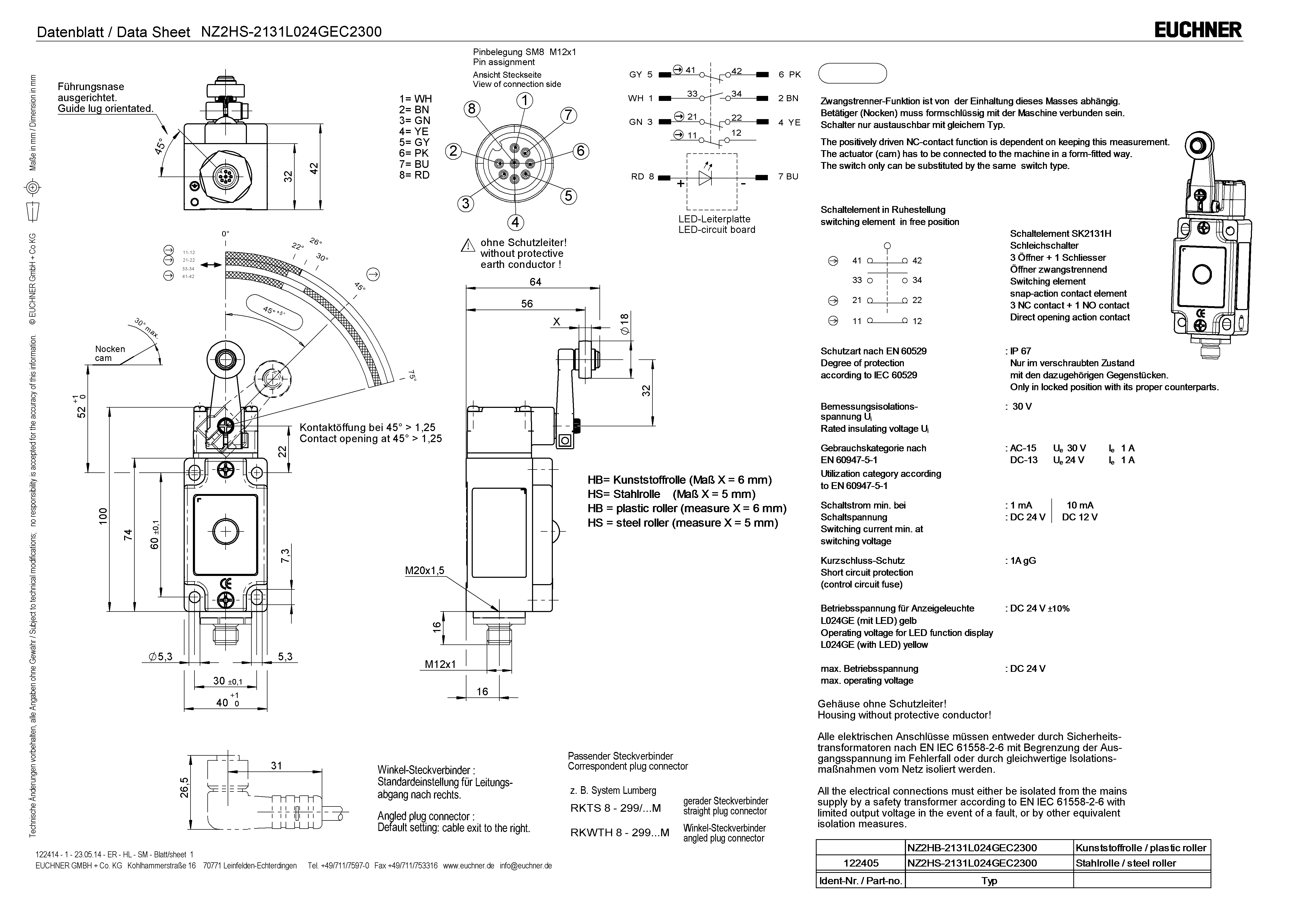 HomeProdukteElektromechanische Sicherheitsschalter ohne ZuhaltungN1A / NB01 Einzelgrenztaster, NZ Positionsschalter und EGZ EinbaugrenztasterNZ2HS-2131L024GEC2300