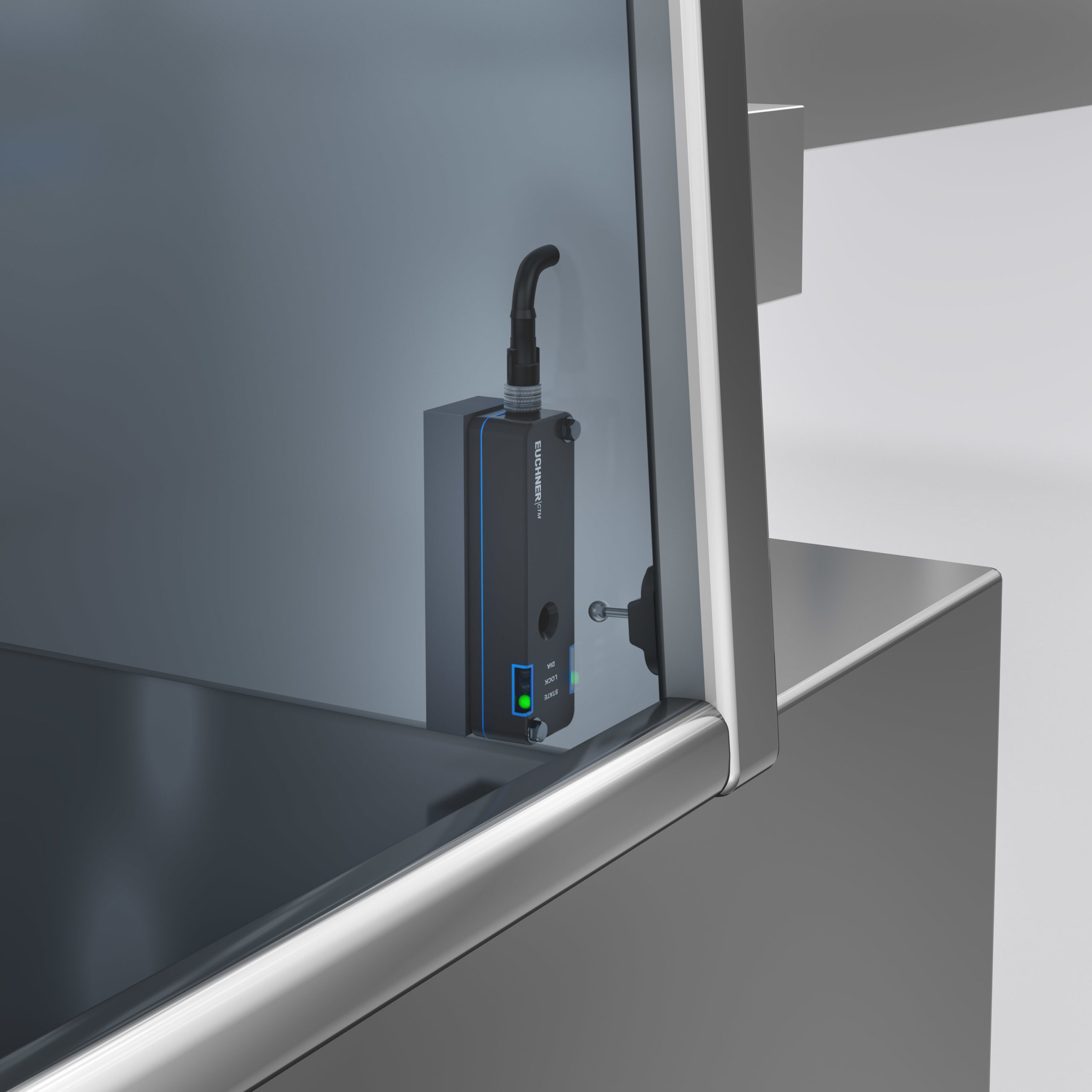 Speziell für den Einsatz an kleinen Klappen und leichten Türen entwickelt, besticht die neue transpondercodierte Türzuhaltung CTM durch ihre äußerst geringen Maße – und erlaubt so einen nahezu unsichtbaren Einbau ins Maschinendesign. Der innovative Elastomer-gelagerte Kugelbetätiger gestattet selbst die Absicherung von Türen mit extrem kleinen Schwenkradien. Die bistabile Zuhaltefunktion des Sicherheitsschalters CTM sorgt dafür, dass die Zuhaltung bei Stromausfall oder beim Abschalten der Anlage in ihrem aktuellen Zustand verbleibt: So bleibt die Tür zugehalten, wenn sie vorher bereits zugehalten war. War die Zuhaltung vorher nicht aktiviert, lässt sich die Tür ebenso beliebig öffnen und schließen. Ein unbeabsichtigtes Einschließen von Personen bei Stromausfall ist somit nicht mehr möglich. Intelligente Kommunikationsfähigkeiten via IO-Link sorgen für Zukunftssicherheit in Hinblick auf Industrie 4.0.