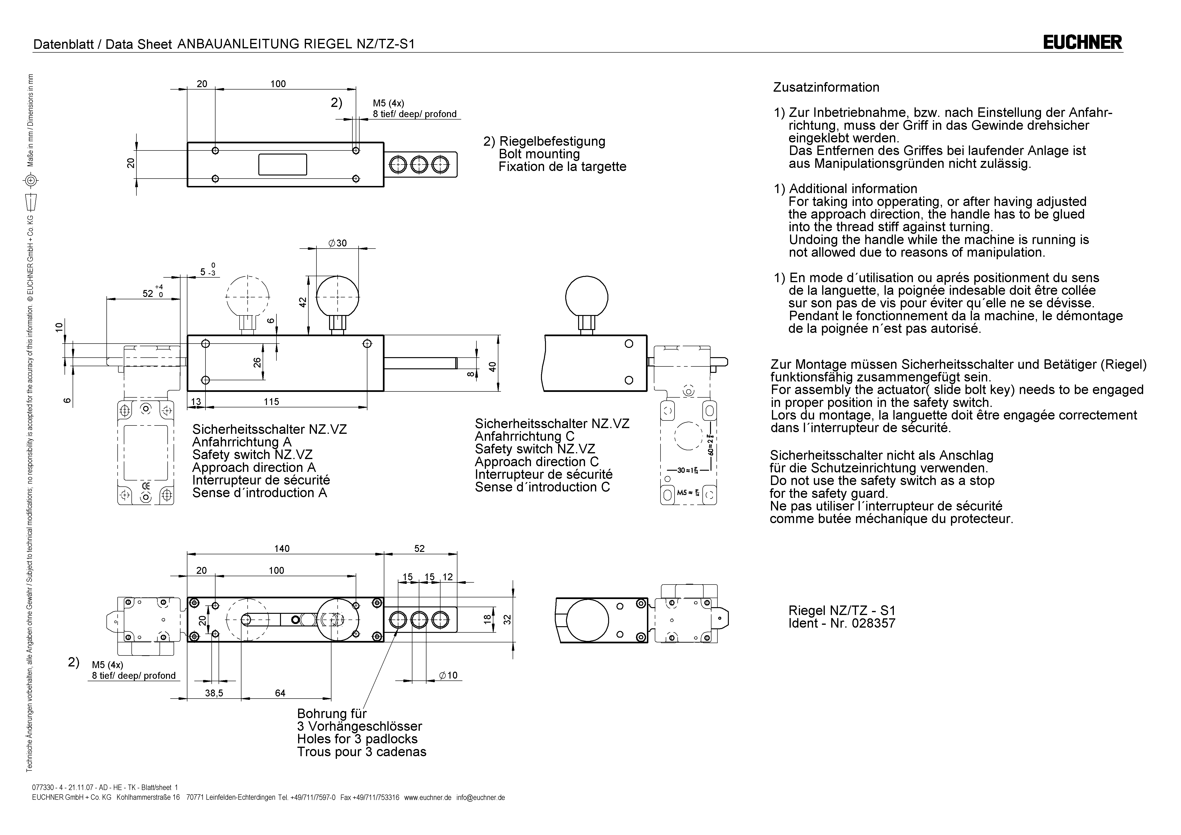 | 1 | Safety switch NZ.VZ approach direction A |