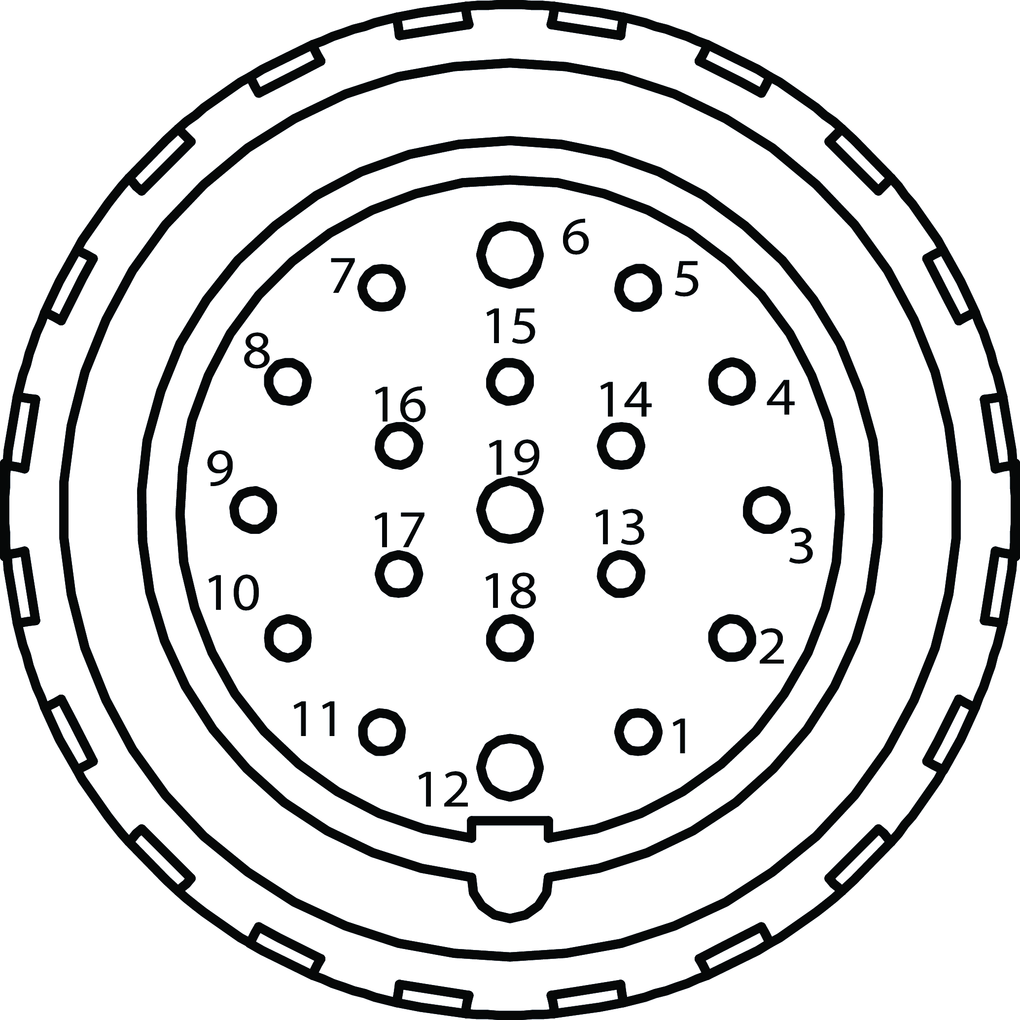 | 1 | Female plug with union nut M23, 19-pin, with shield spring |