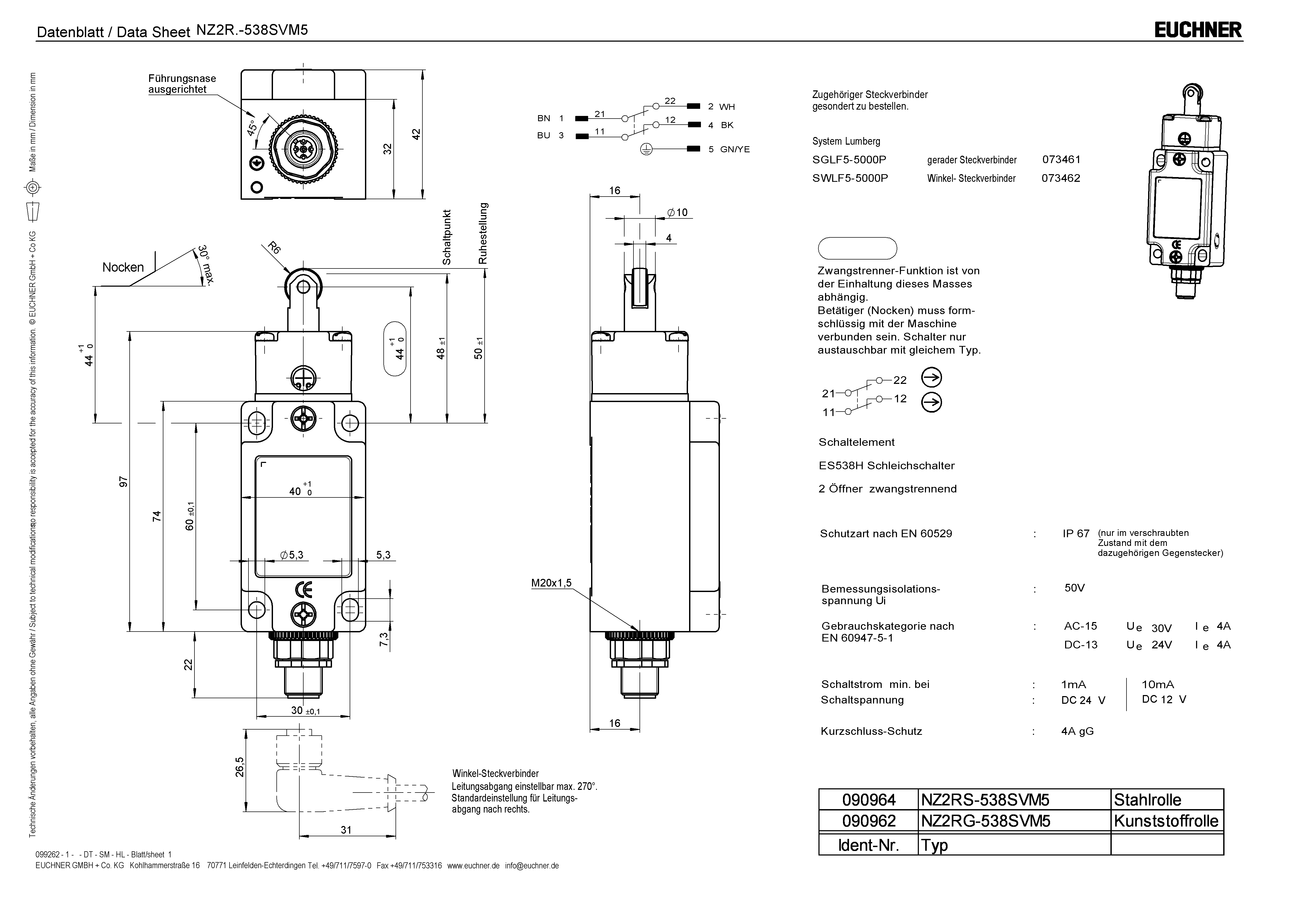 HomeProductsElectromechanical safety switches without guard lockingN1A / NB01 Single Limit Switch, NZ position switch and EGZ single fixing limit switchNZ2RS-538SVM5