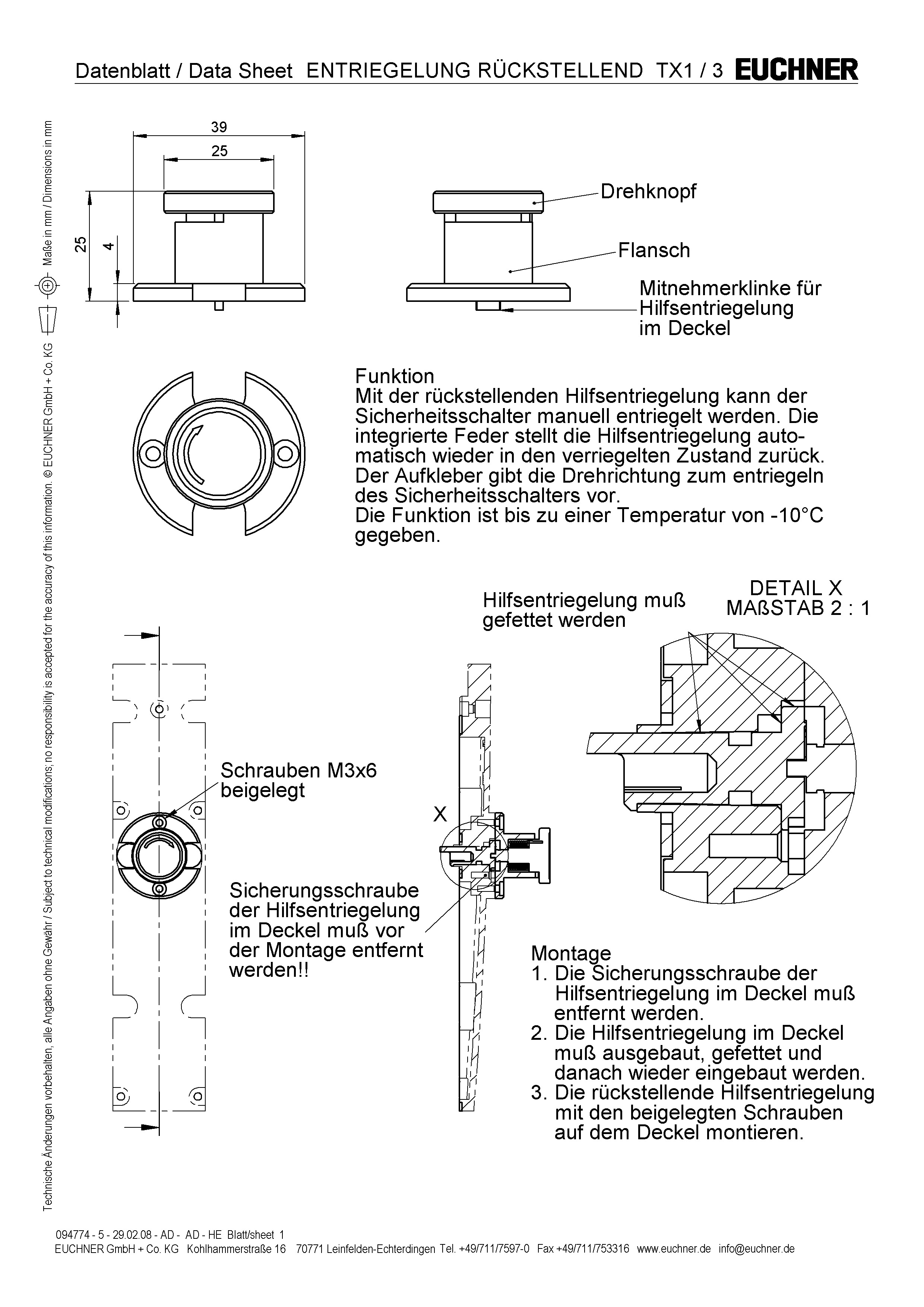 ENTRIEGELUNG RUECKSTELLEND TX1/3 (Order no. 094773)