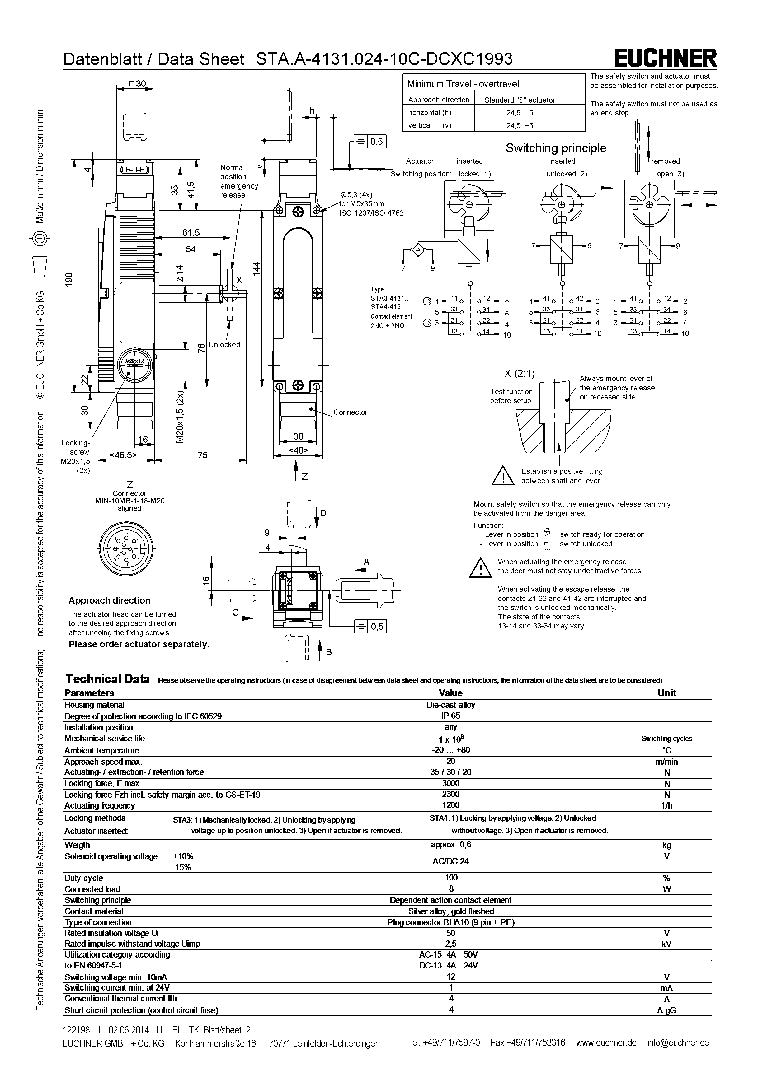| Important! Values valid at DC-13 100 mA/24V | ||