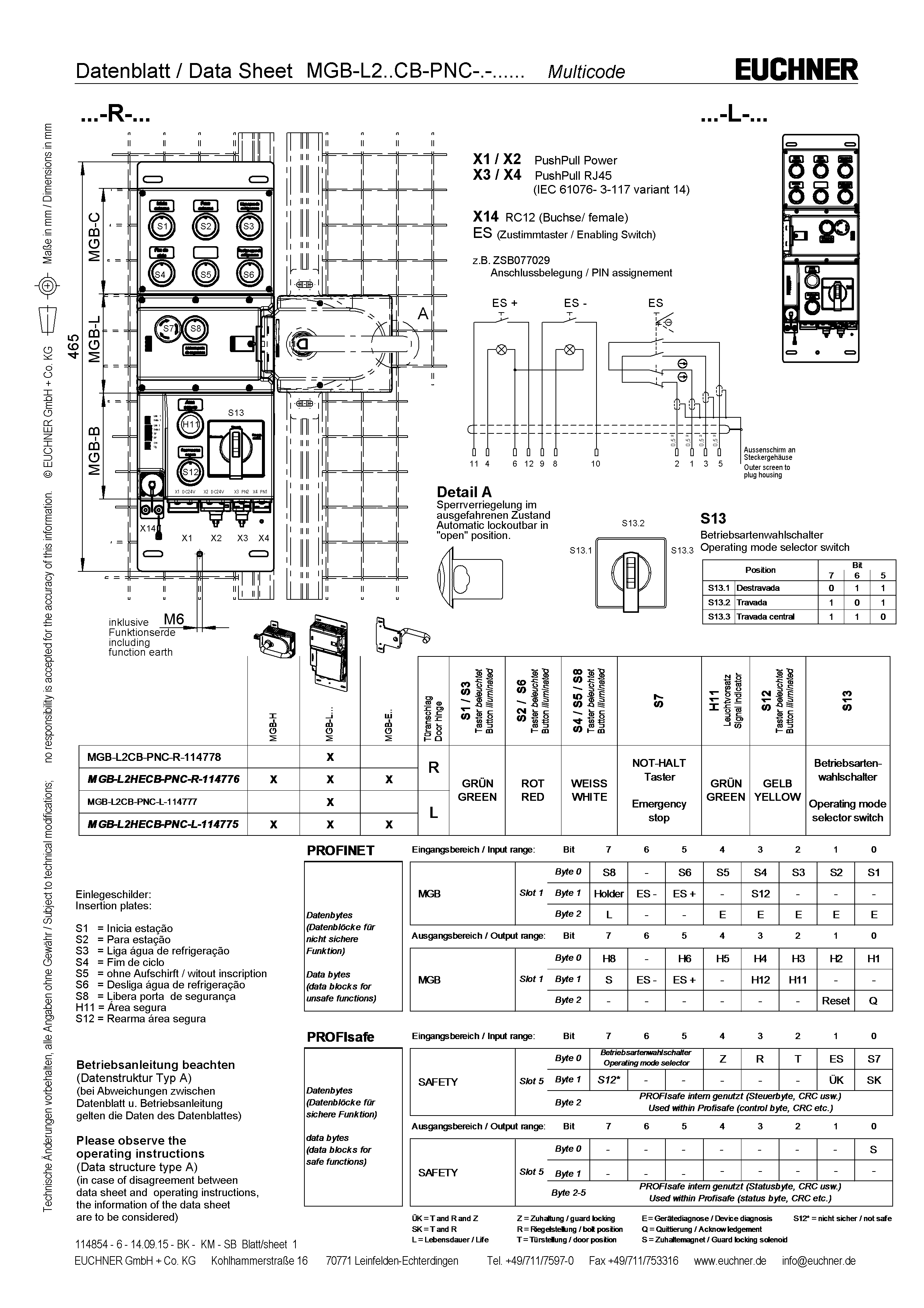 Betriebsanleitung Sicherheitssysteme MGB-L..B-PN.-… (PROFINET) und mit Datenstruktur Typ A