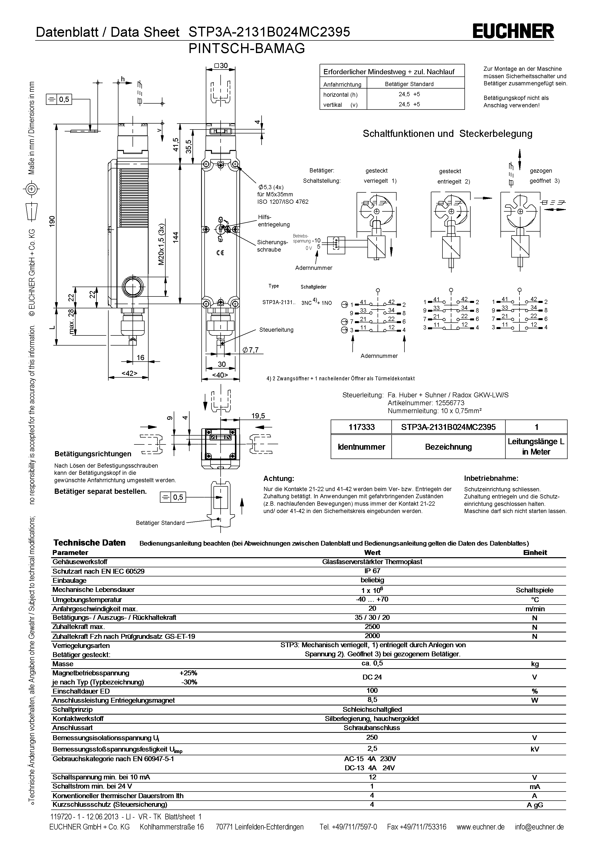 Инструкция по эксплуатации Предохранительный выключатель STP…