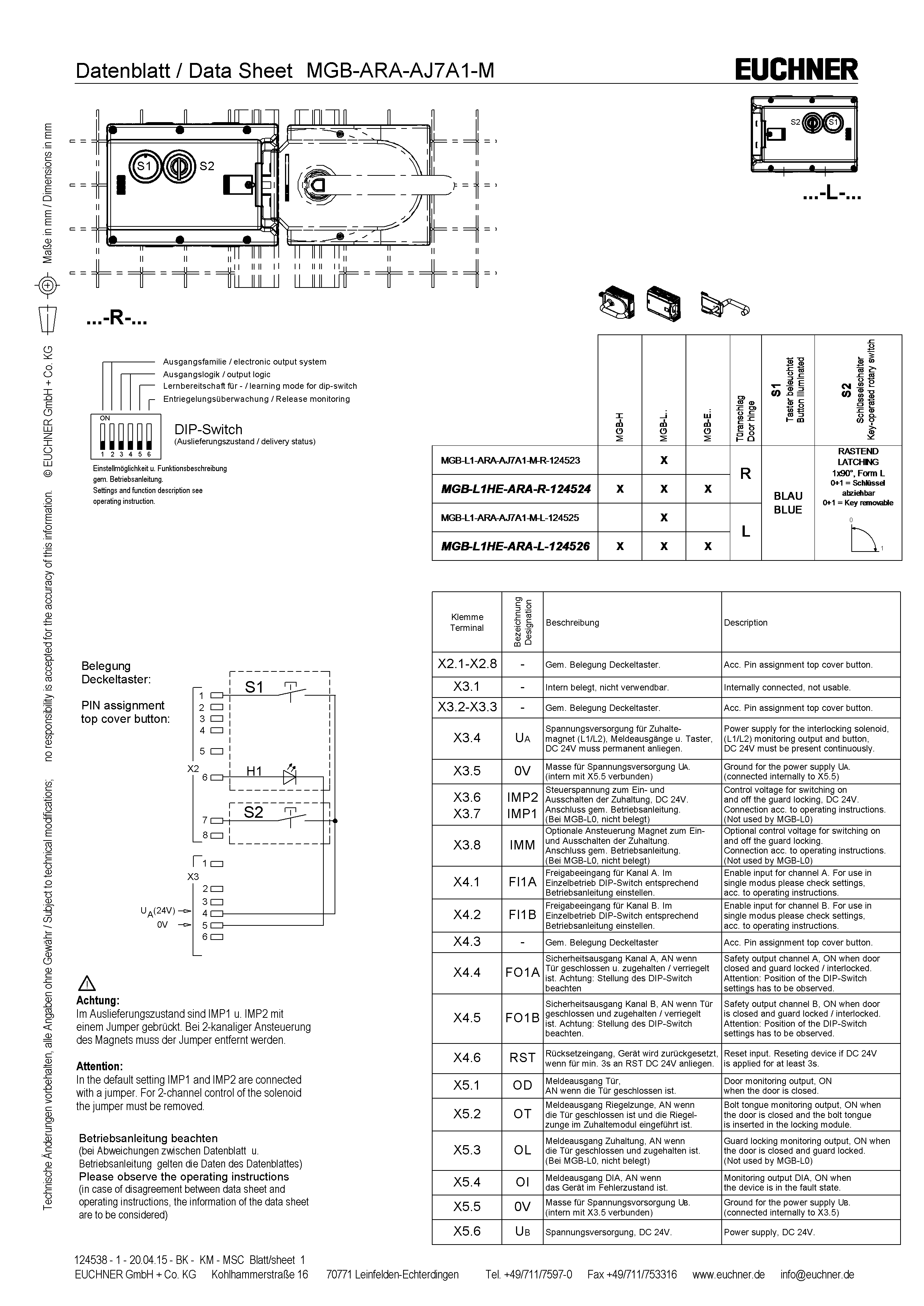 Betriebsanleitung Sicherheitssysteme MGB-L1…-AR.-… / MGB-L2…-AR.-… und MGB-L1…-AP.-… / MGB-L2…-AP.-…