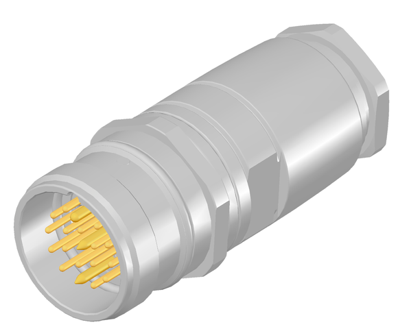- Male plug M23 with external thread, straight