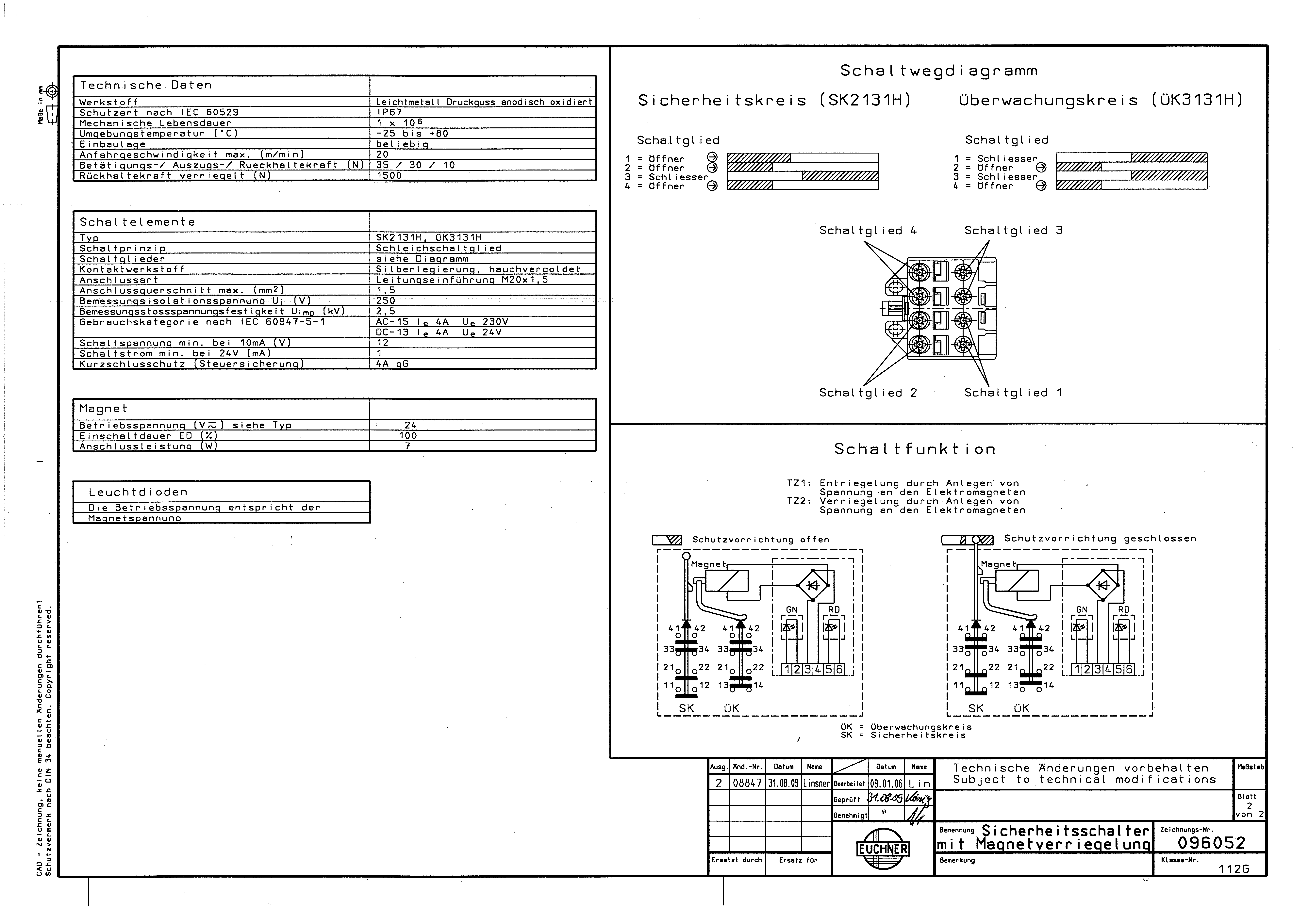 Contacts for guard locking: 2 positively driven contacts |