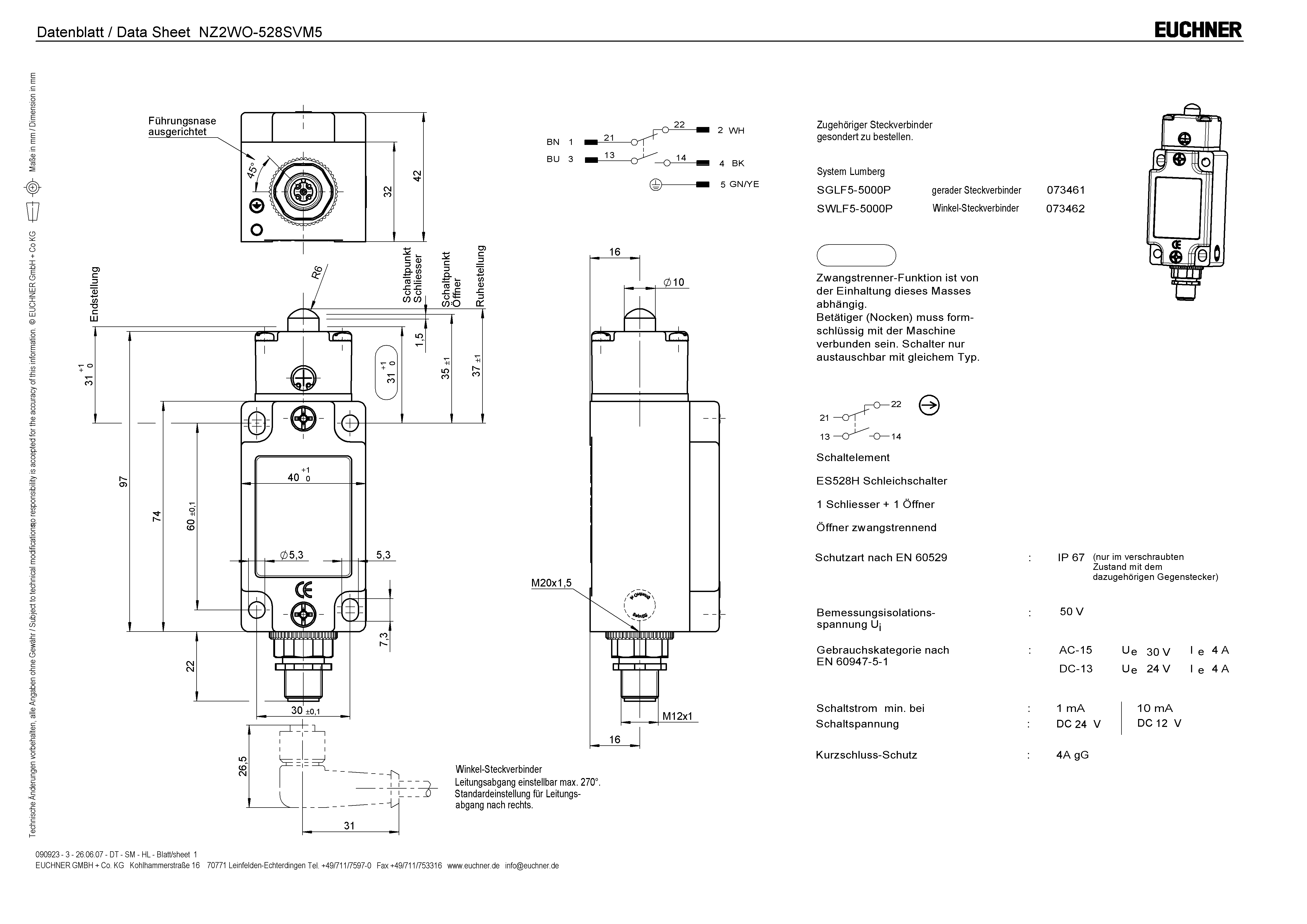 HomeProductsElectromechanical safety switches without guard lockingN1A / NB01 Single Limit Switch, NZ position switch and EGZ single fixing limit switchNZ2WO-528SVM5