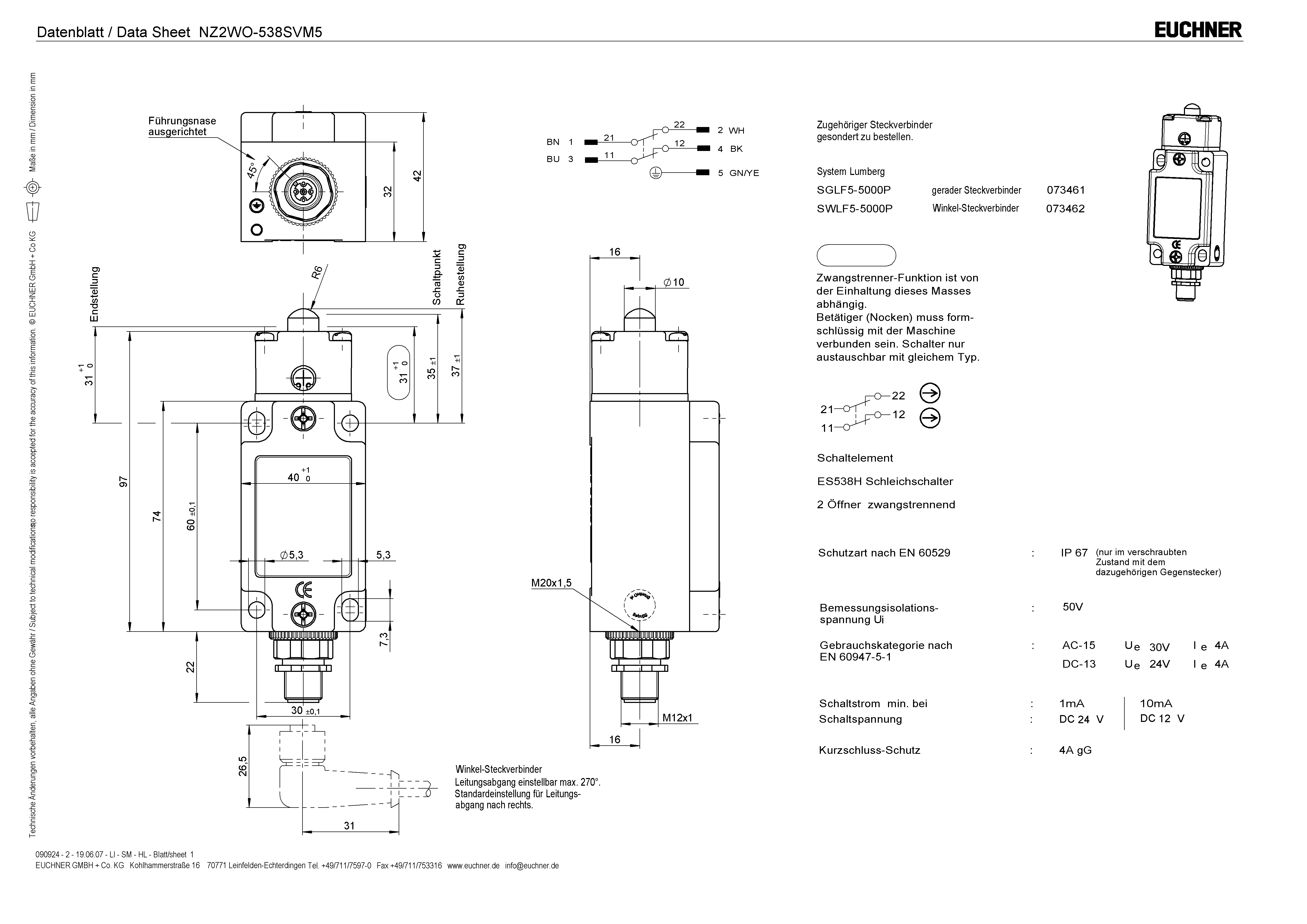 HomeProductsElectromechanical safety switches without guard lockingN1A / NB01 Single Limit Switch, NZ position switch and EGZ single fixing limit switchNZ2WO-538SVM5