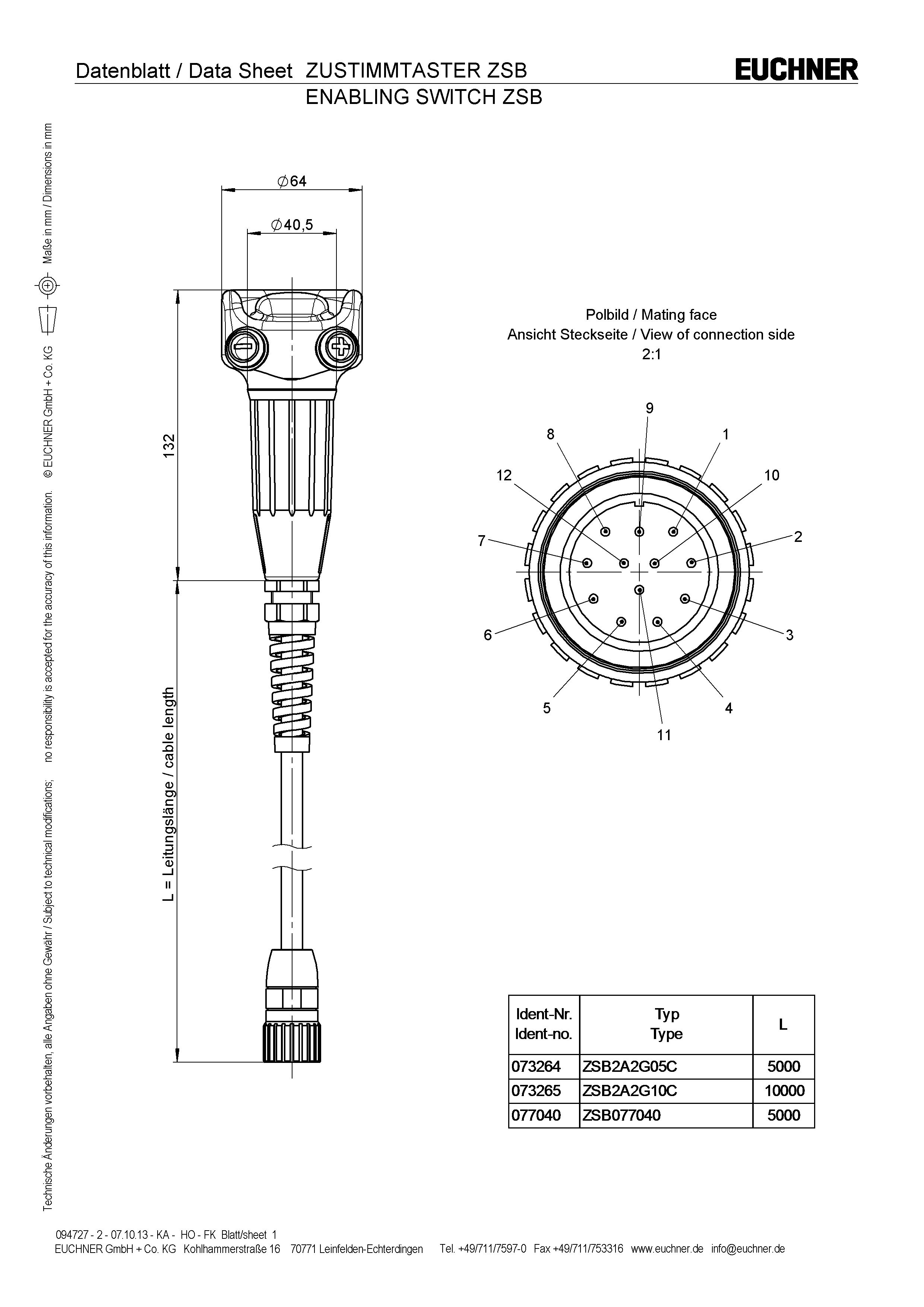 | Connecting cable | 8x0.5 mm² + 8x0.14 mm² (4x0.5 mm² screened + 4x0.5 mm² unscreened + 8x0.14 mm² unscreened. Outer screen over everything.) |