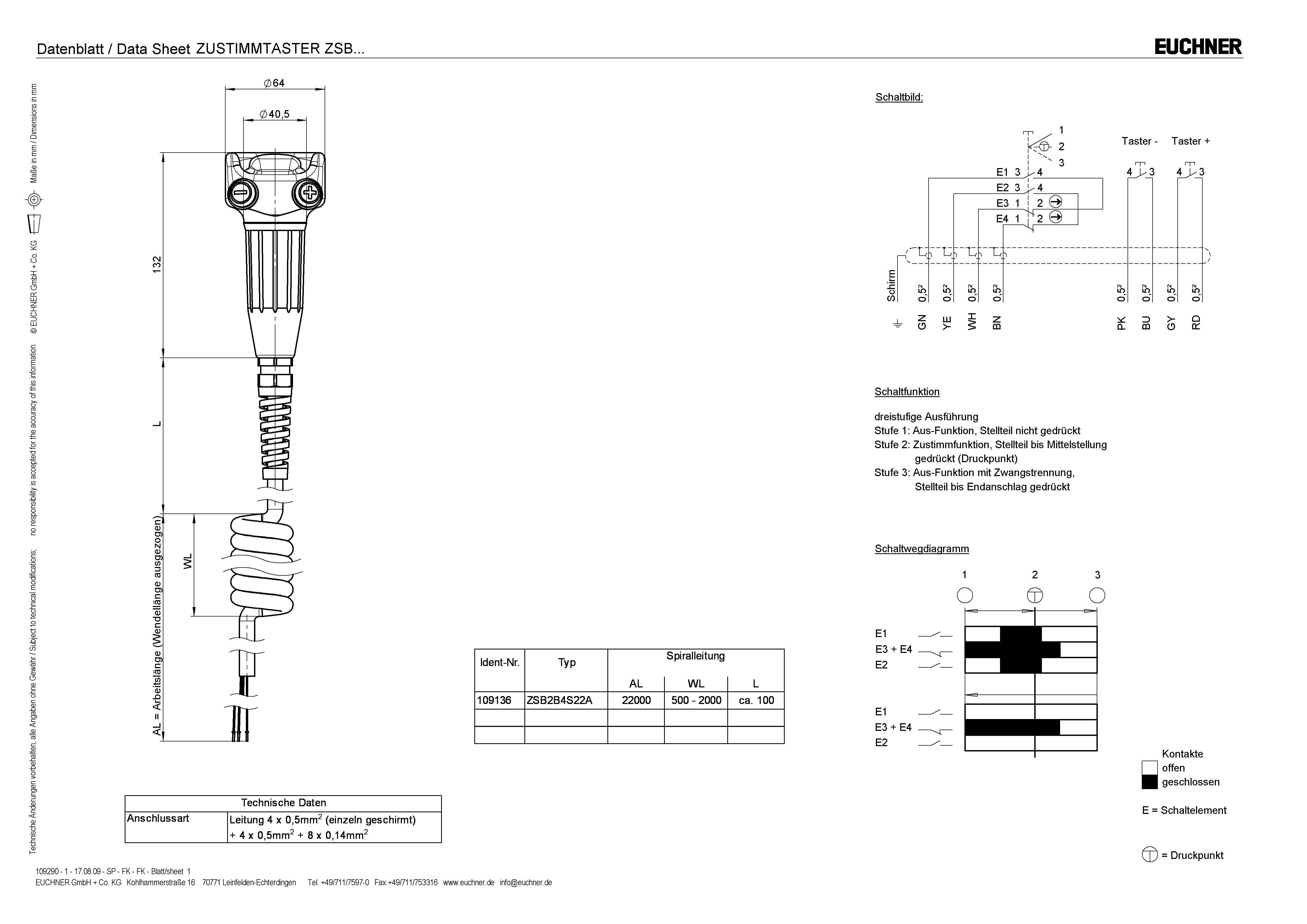 Enabling function is active only in the second stage (center position, actuating point). If the pushbutton is released or pushed further (panic function), the enabling is removed (dependent on the wiring, see function sequence).