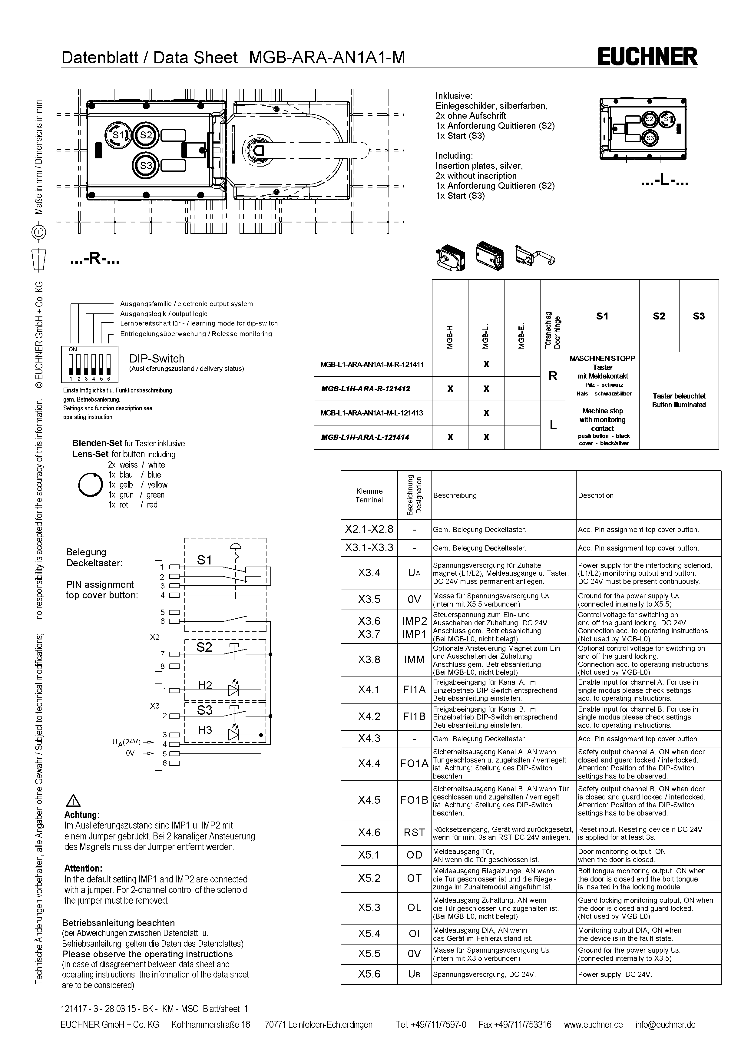 | Item | Color | Extras | Note slide-in label | Version | Switching element | Slide-in label | Number | Designation1 | LED |