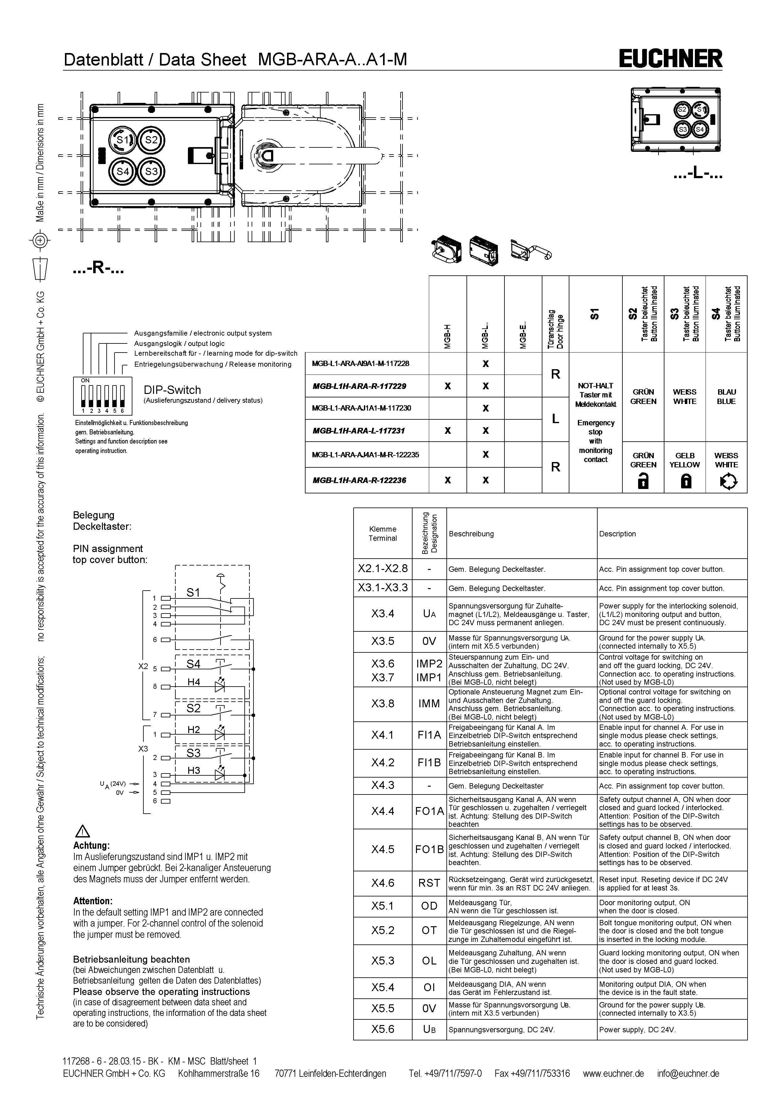 MGB-L1... | The locking arm is held in the locked position by spring force and is unlocked by solenoid force (closed-circuit current principle, mechanically locked). |