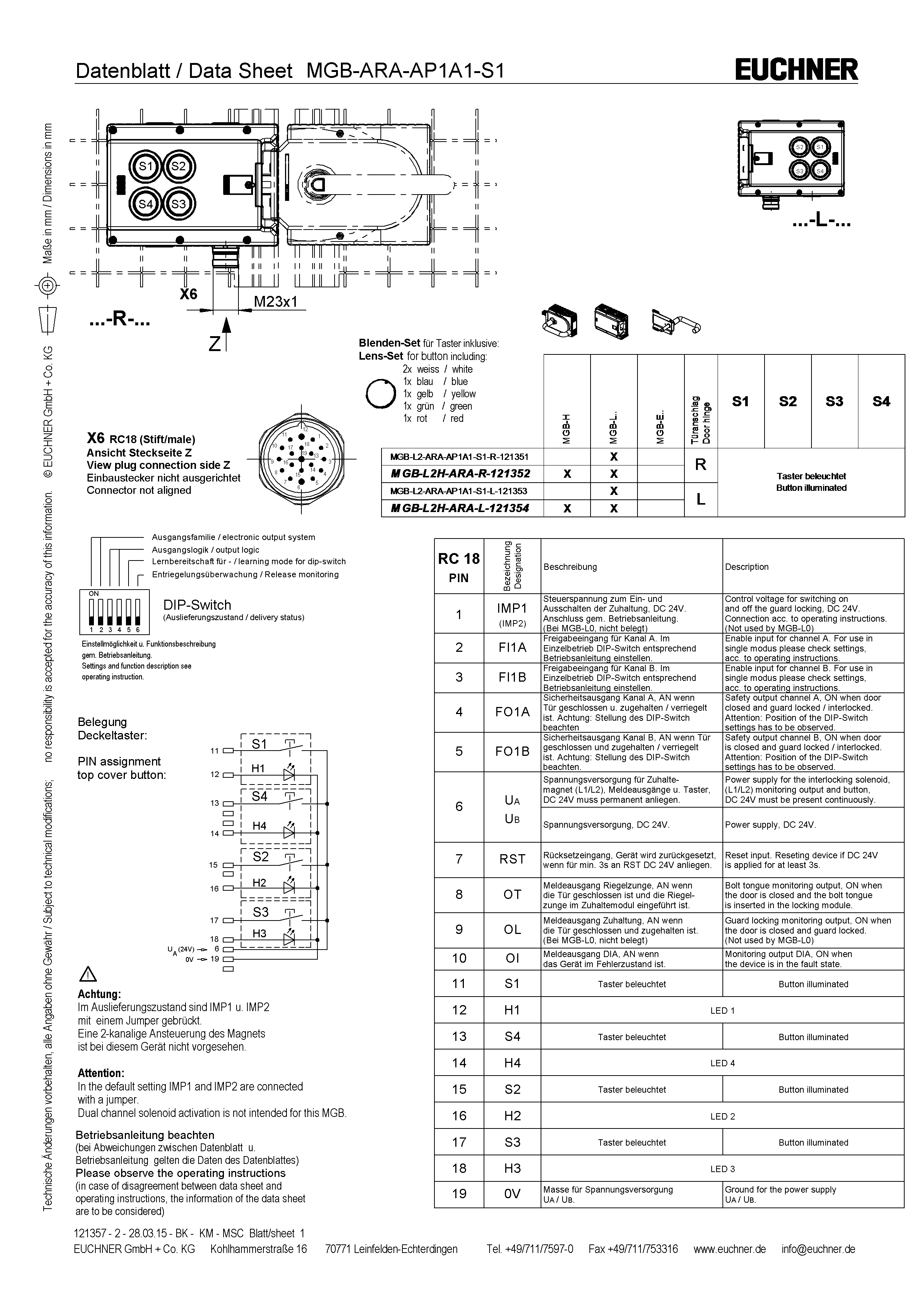 | Item | Color | Extras | Note slide-in label | Version | Switching element | Slide-in label | Number | Designation1 | LED |
