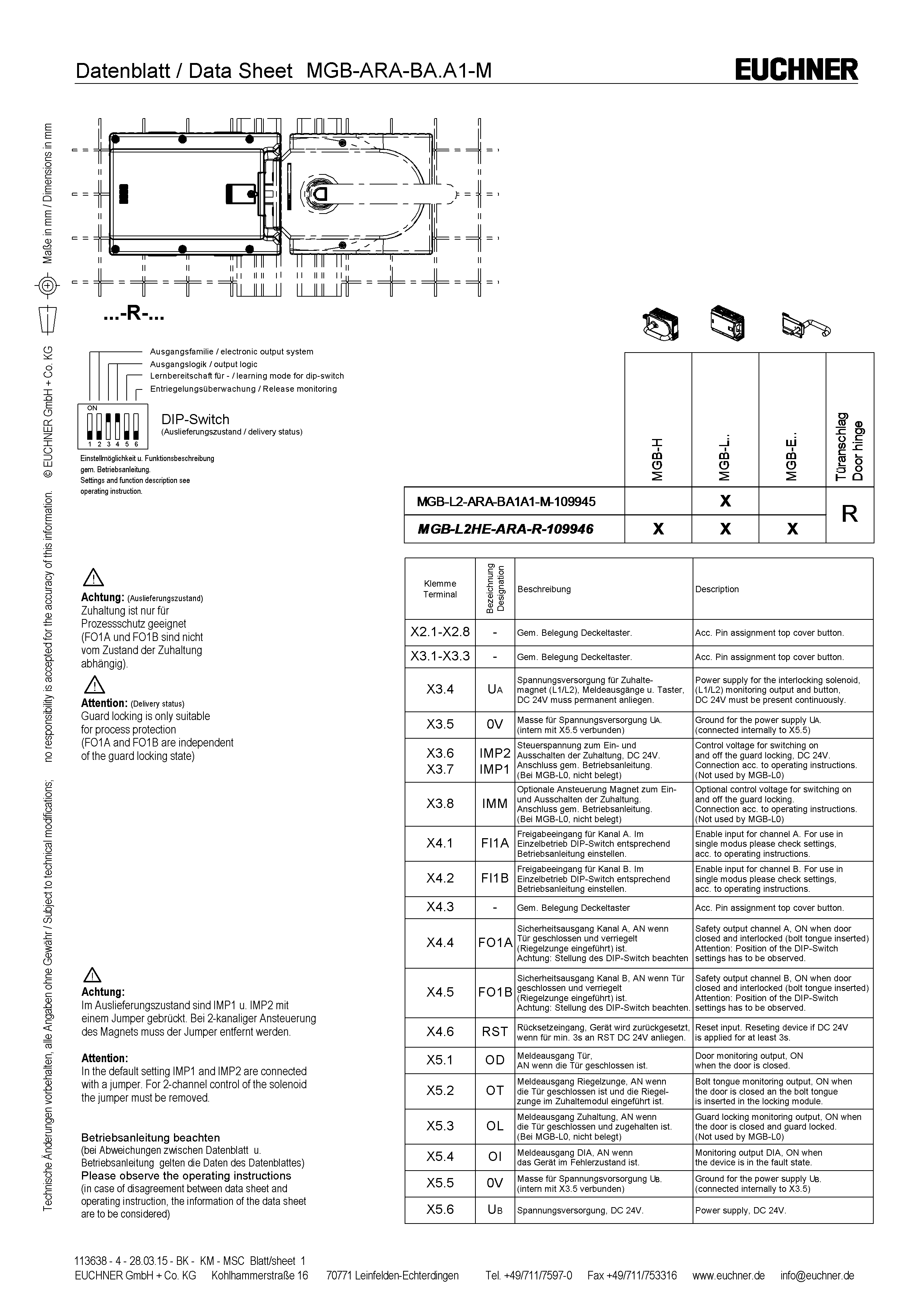MGB-L2... | The locking arm is held in the locked position by solenoid force and is unlocked by spring force when the solenoid is switched off (open-circuit current principle, electrically locked). |