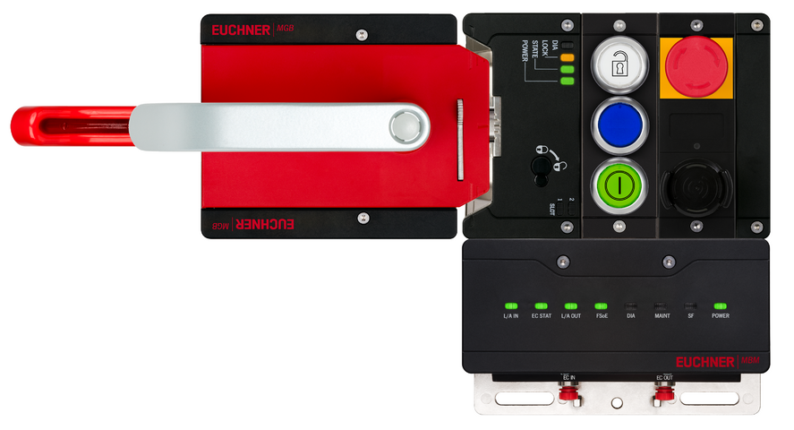 Complete set MGB2-L1...-EC (3 pushbuttons, emergency stop, CKS2 key adapter, slide-in label, closed-circuit current principle, door hinge on left)