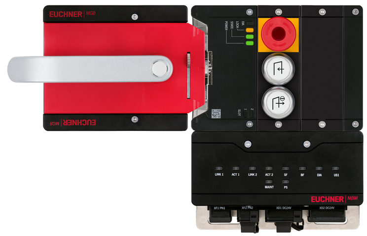 Complete set MGB2-I...-PN (2 pushbuttons, emergency stop, interlocking without guard locking, door hinge on left)