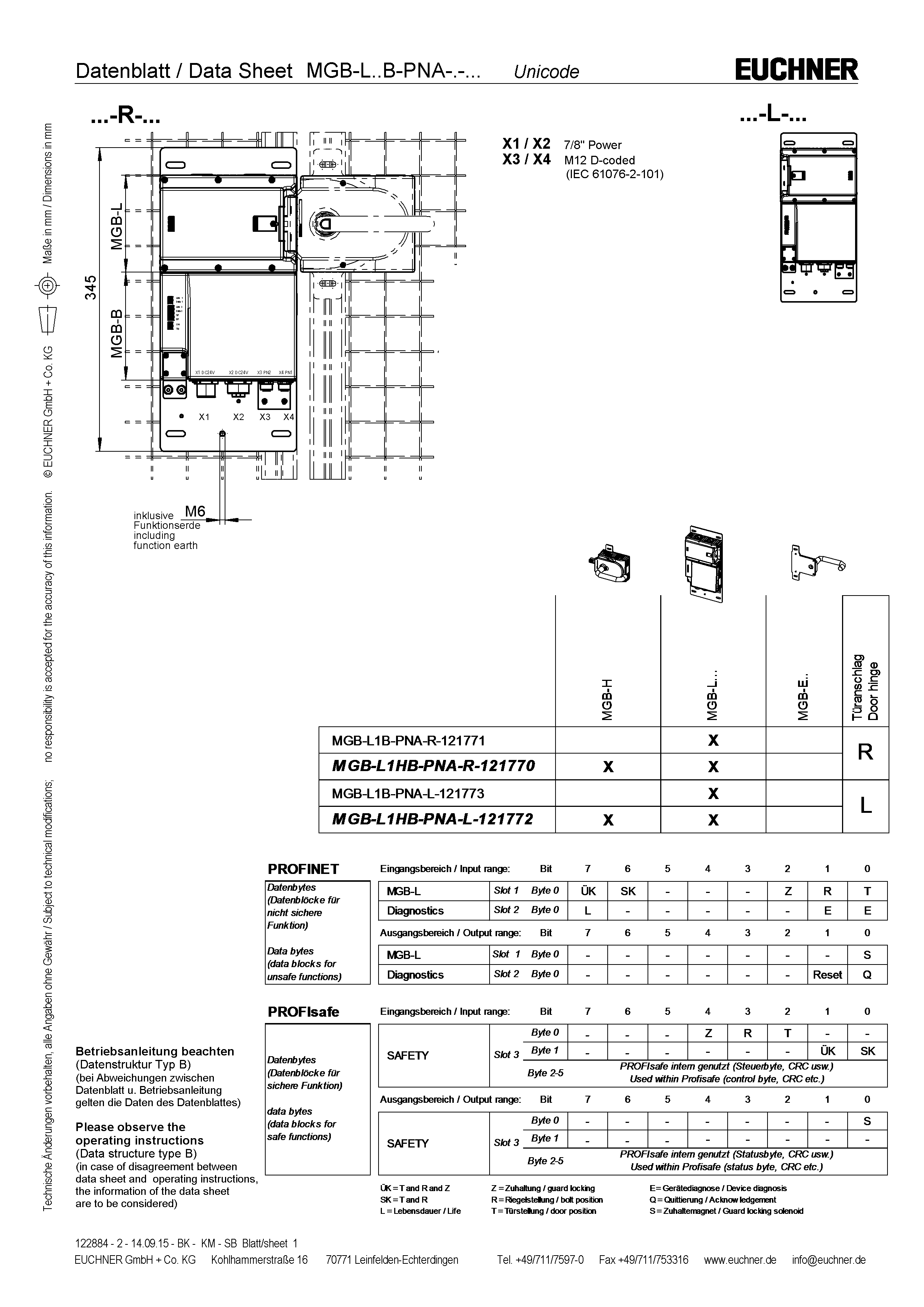 Betriebsanleitung Sicherheitssysteme MGB-L..B-PN.-… (PROFINET) und mit Datenstruktur Typ B