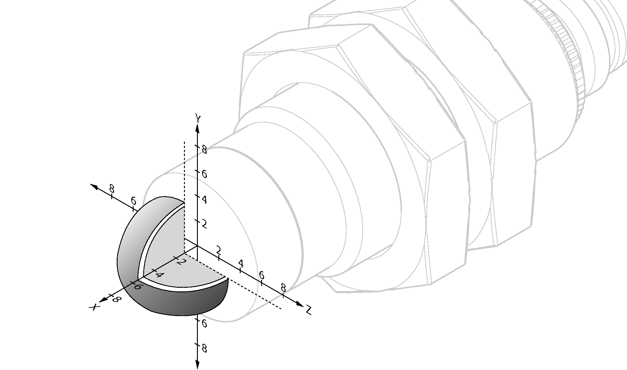 | 1) | Zone de non influence (zone de la surface active sans environnement métallique) |