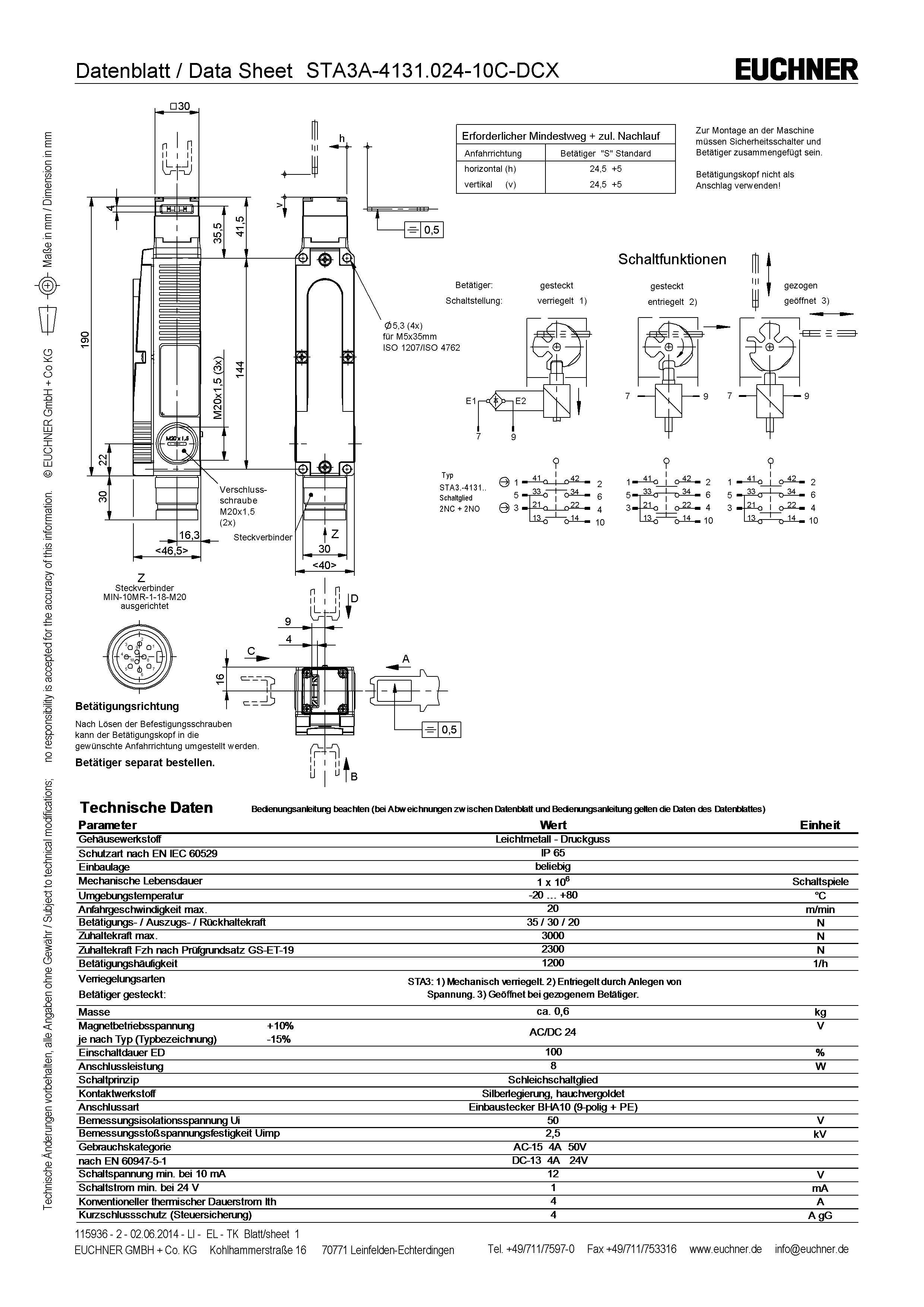 | Important! Values valid at DC-13 100 mA/24V | ||