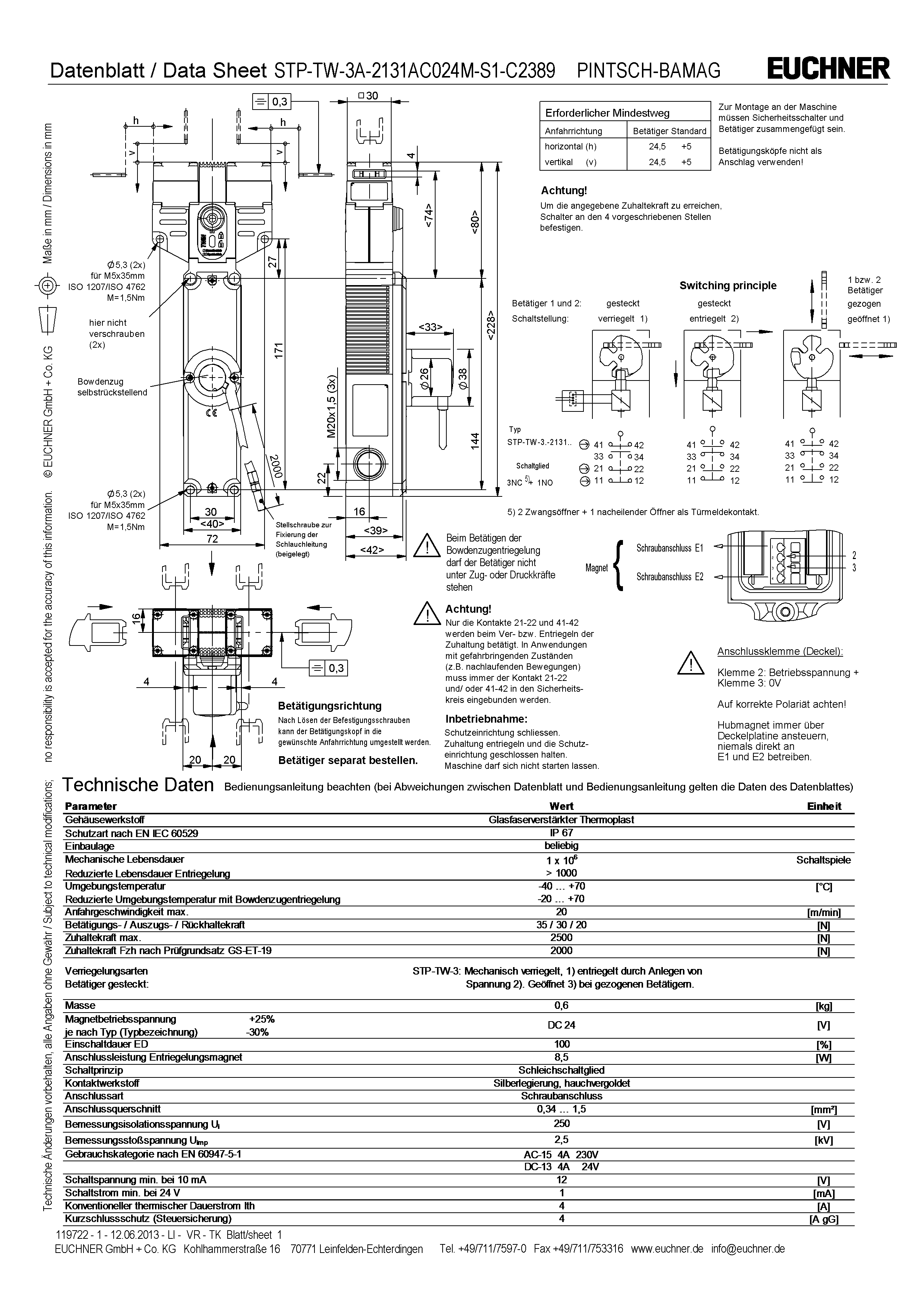 Betriebsanleitung Sicherheitsschalter STP-TW… (Twin)