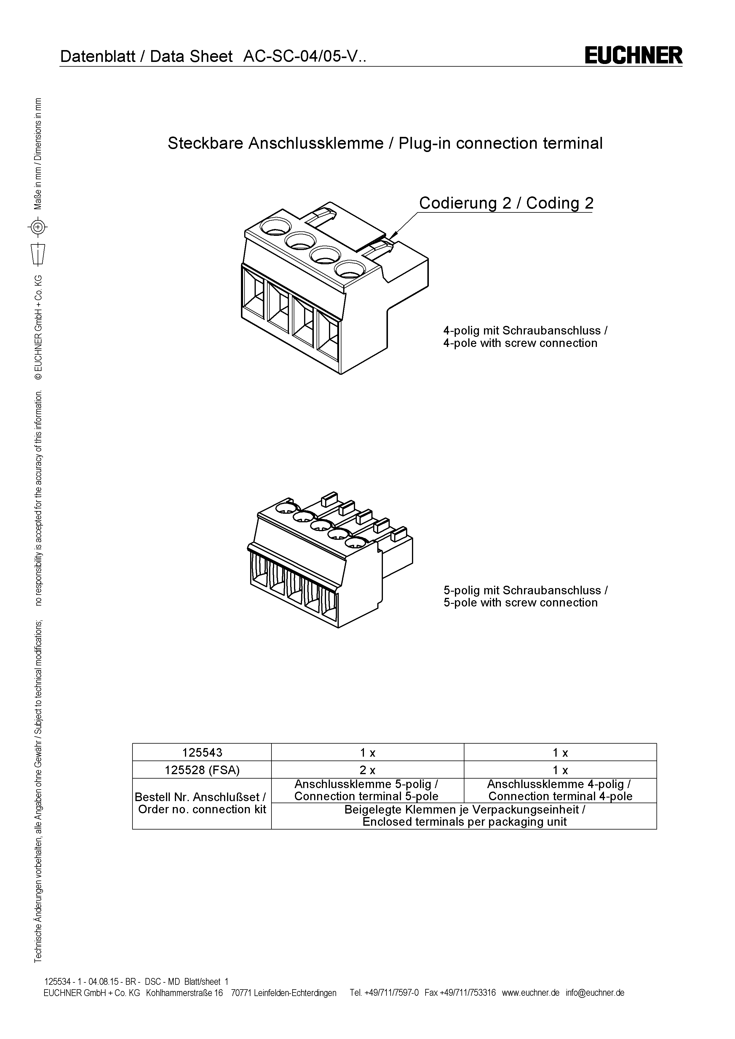 - 1 screw terminal, 4-pole, coded