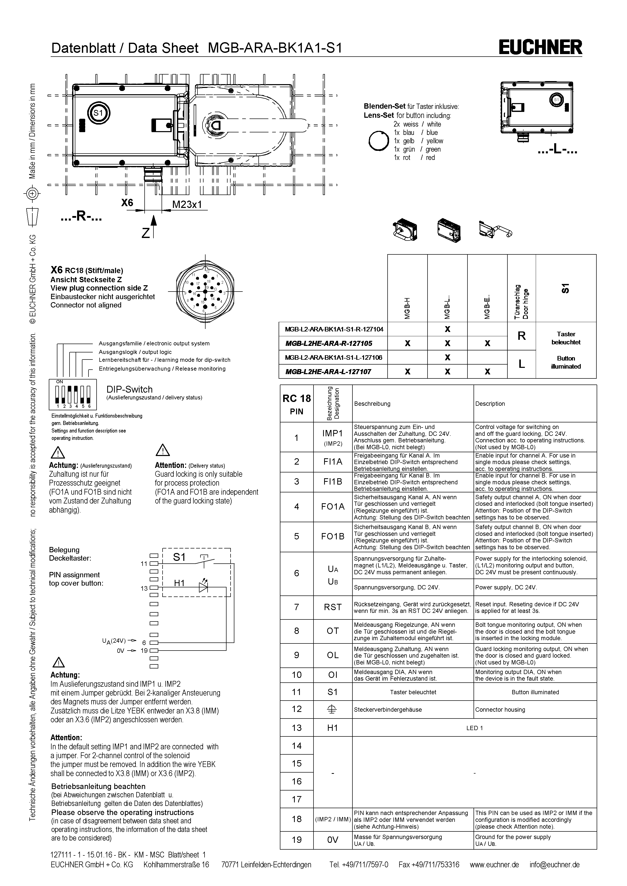 Betriebsanleitung Sicherheitssysteme MGB-L1…-AR.-… / MGB-L2…-AR.-… und MGB-L1…-AP.-… / MGB-L2…-AP.-…