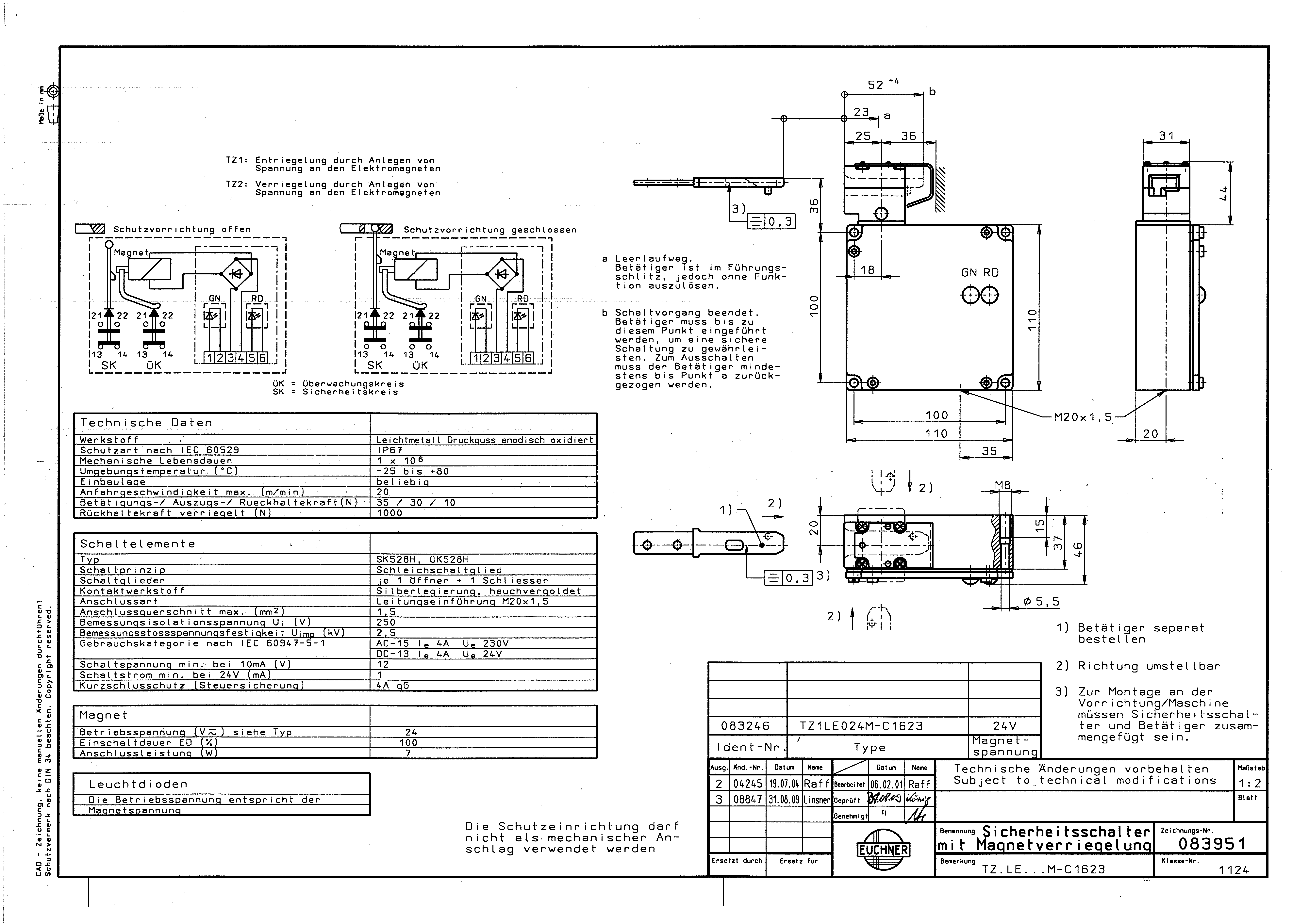 | Control of guard locking | Depending on external control of guard locking | 20 y | ||