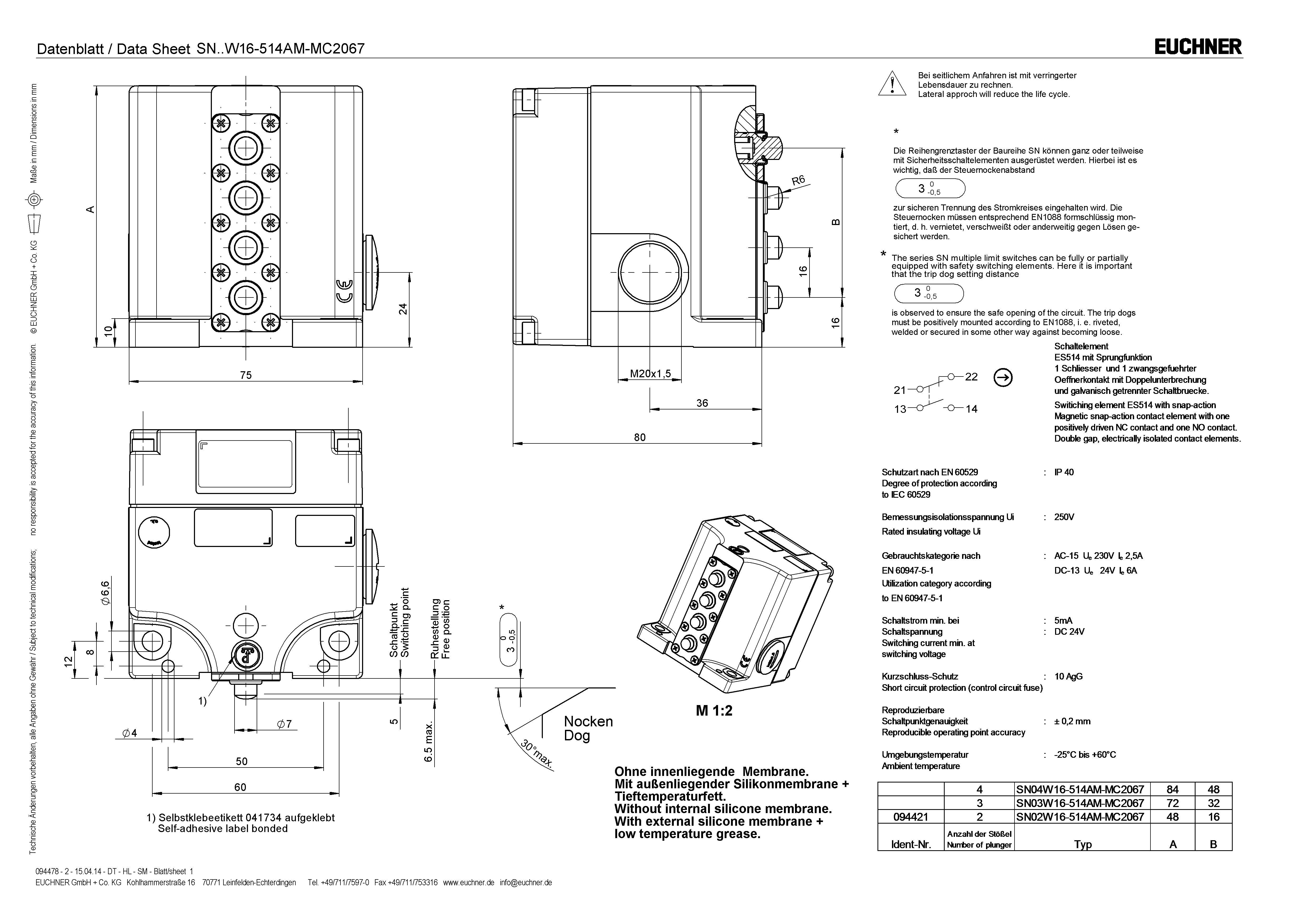 Operating instructions Precision Multiple Limit Switches SN 12/16 mm