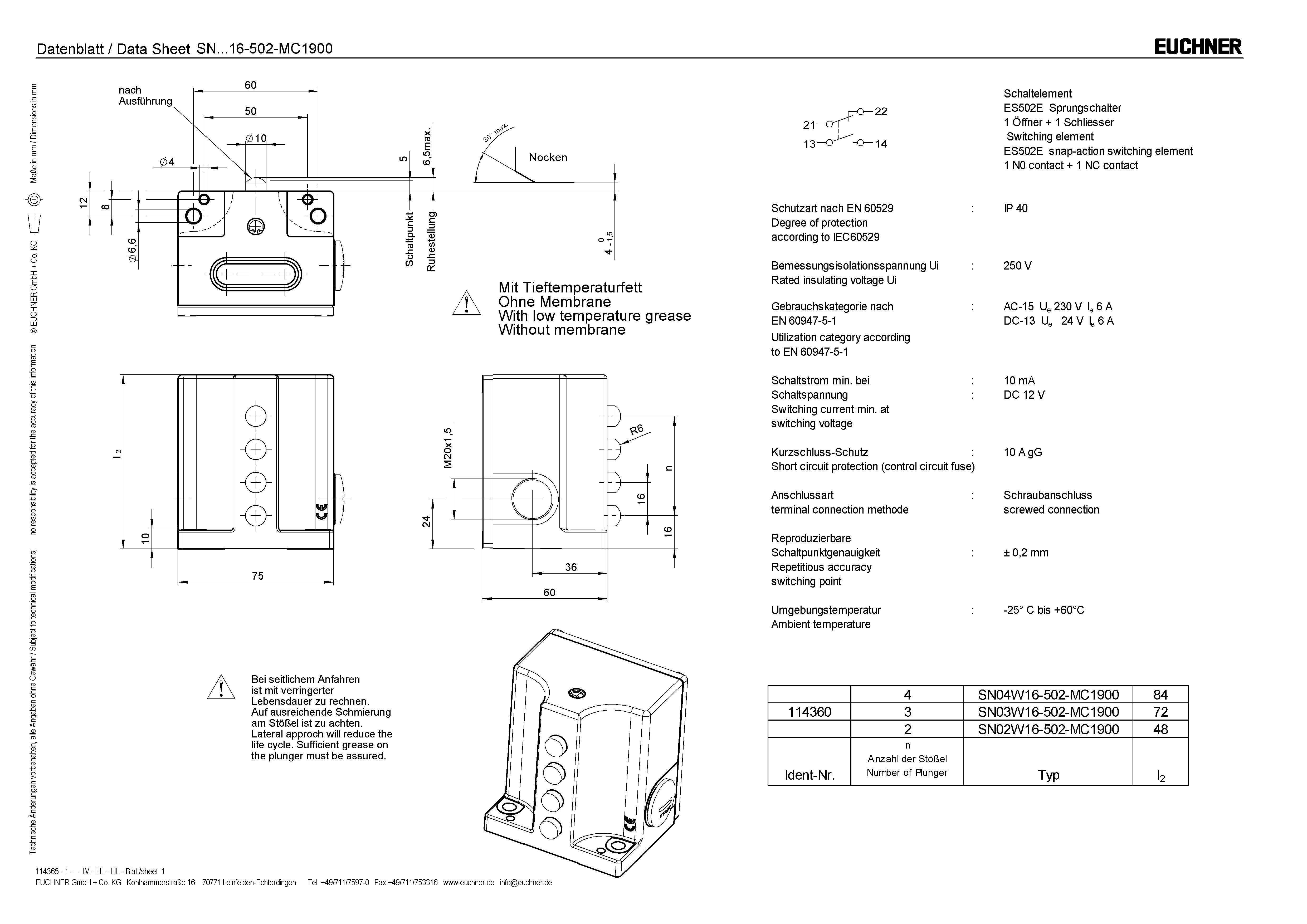 Operating instructions Precision Multiple Limit Switches SN 12/16 mm