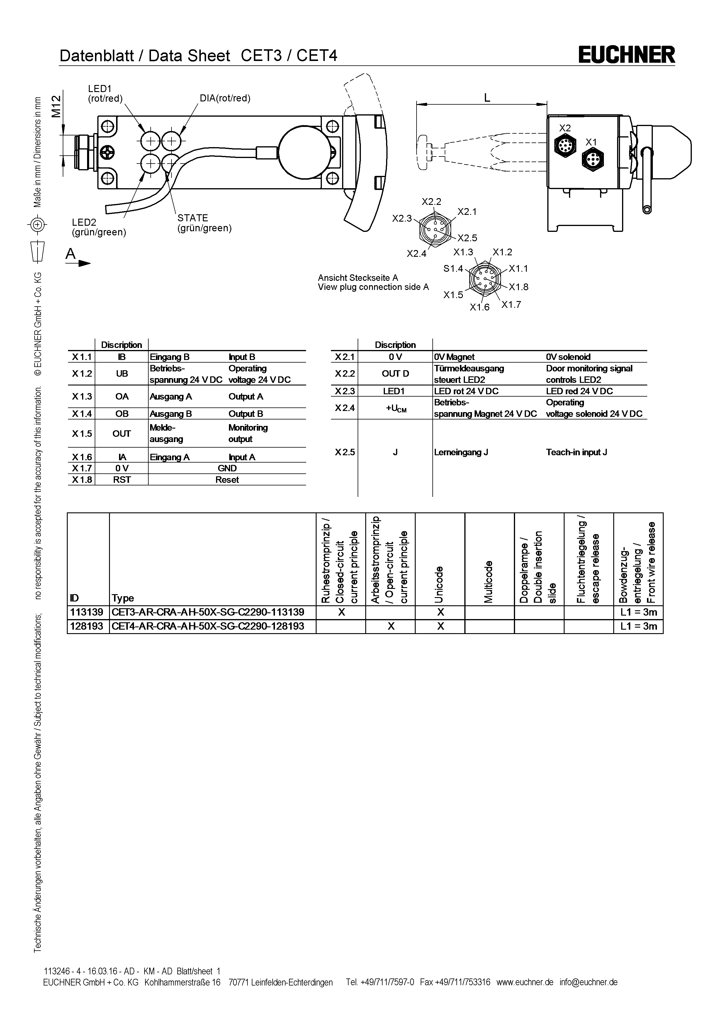 Mode d’emploi Interrupteur de sécurité à codage par transpondeur avec interverrouillage CET.-AR-… (unicode / multicode)