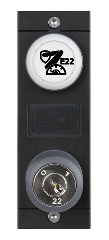 - V 字形回転式キー操作スイッチ、1 x 90°、1 個、E22 クローズ付き