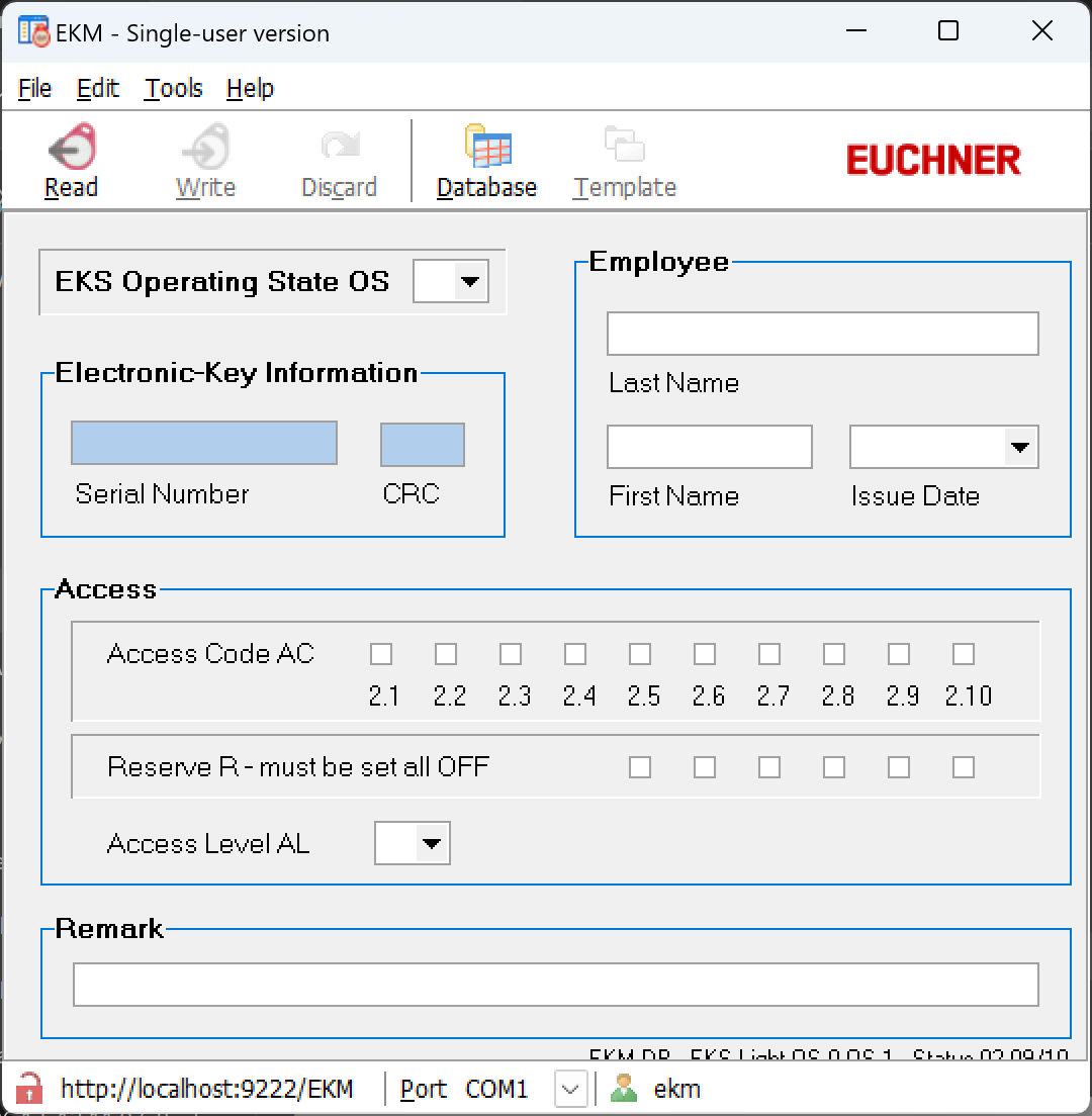 電子キー・マネージャー EKM は、PC 上で電子キーを書き込み管理するためのソフトウェア・パッケージです。電子キーすべてとその内容を集中データベースで管理します。電子キーのメモリーは自由にプログラムでき、特定のデータベース・フィールドに割り当てることができます。必要に応じてデータベース フィールドと入力マスクを設定できます。書き込みおよび読み取りの権限はユーザー管理により付与できます。EKM を既存の EKS 環境に統合することも可能です。