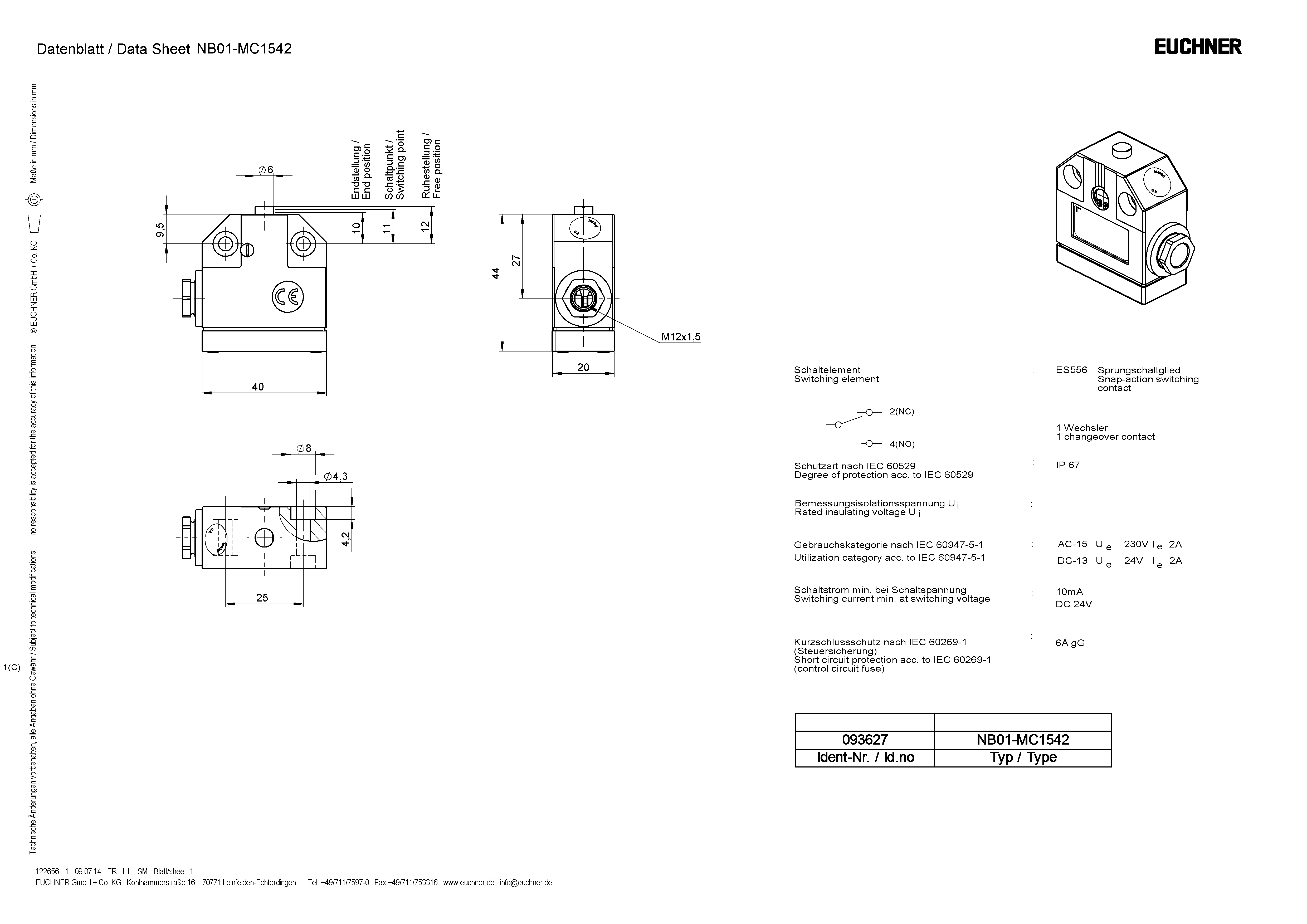 Betriebsanleitung Präzisions-Einzelgrenztaster N01/NB01/SN01