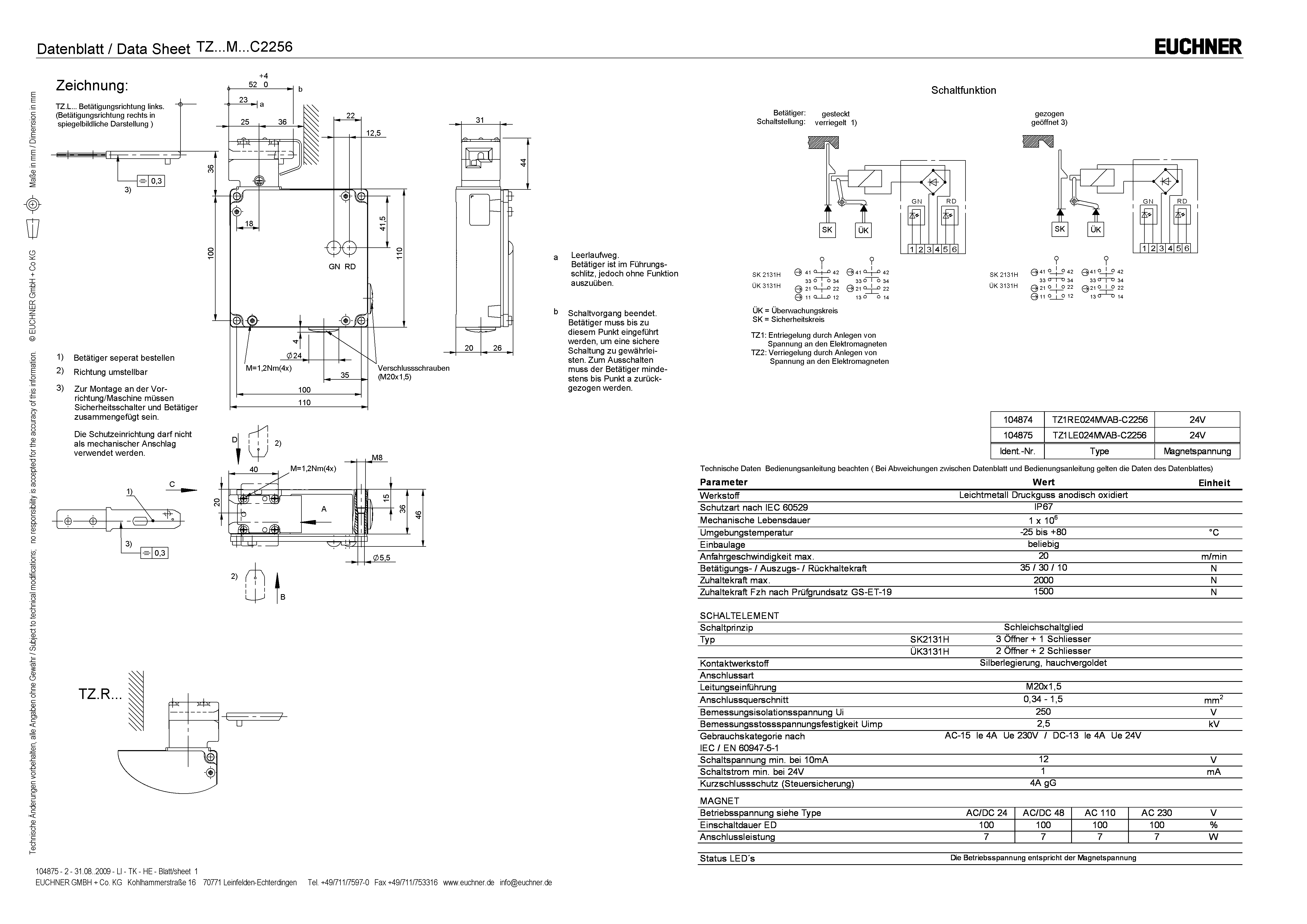 Betriebsanleitung Sicherheitsschalter TZ…