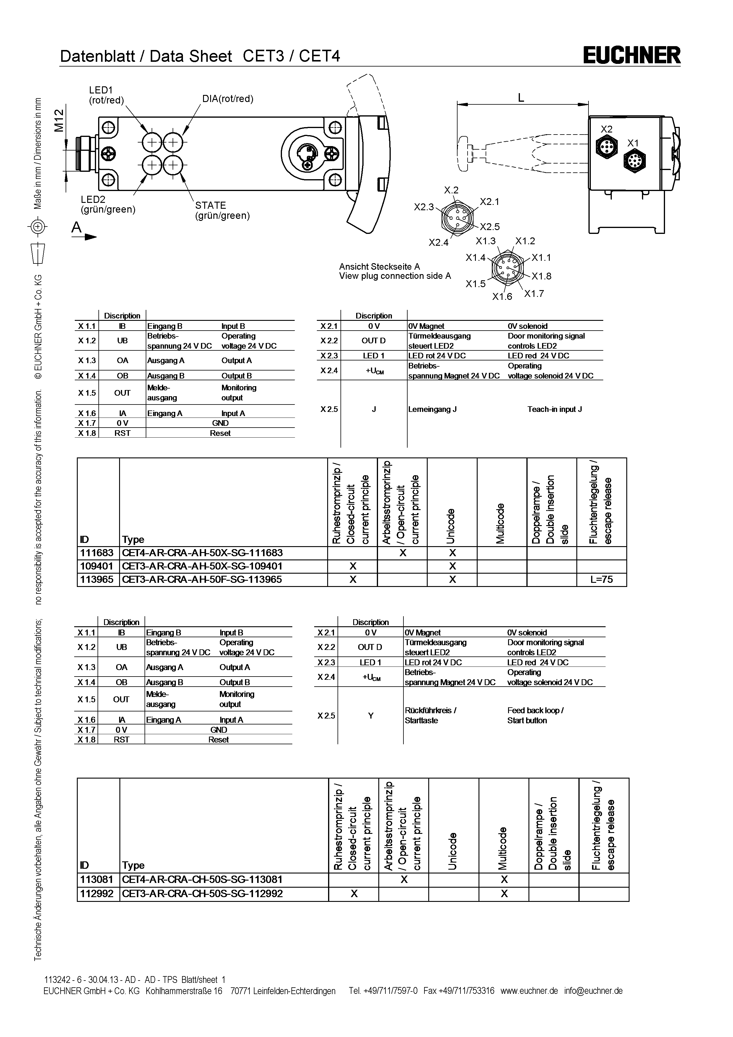 Mode d’emploi Interrupteur de sécurité à codage par transpondeur avec interverrouillage CET.-AR-… (unicode / multicode)