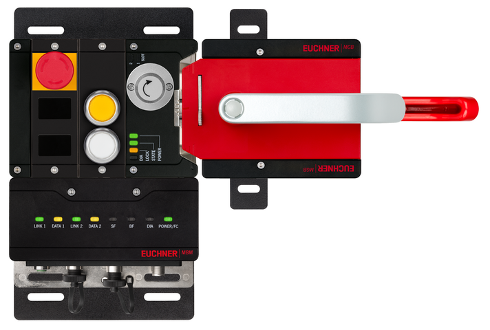 평가 세트 MGB2-L1...-PN(푸시버튼 2개, 비상 스톱, 비상 릴리스, 폐쇄회로 전류 원리, 우측에 도어 경첩)
